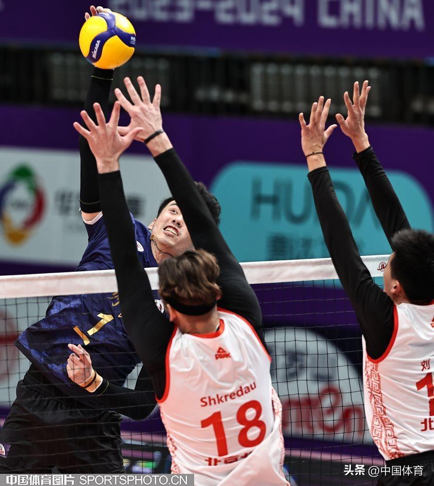 中國體育訊 2月25日,2023-2024賽季中國男子排球超級聯賽第二階段比賽繼續進行。北京北汽坐鎮主場3比1力克上海光明。(中國體育圖片 王憲民 攝)北京北汽隊胡朕卓(左)和隊友攔網北京隊雙人攔網北京隊胡朕卓在比賽中北京北汽隊張秉龍(5號)和隊友雙人攔網北京北汽隊胡朕卓進攻北京北汽隊胡朕卓(15號)和隊員攔網上海光明隊武弸智進攻上海光明隊雙人攔網上海光明隊雙人攔網上海光明隊戴卿堯進攻北京北汽隊鄧忻朋進攻上海光明隊戴卿堯起球上海光明隊武弸智(左)進攻北京隊慶祝勝利