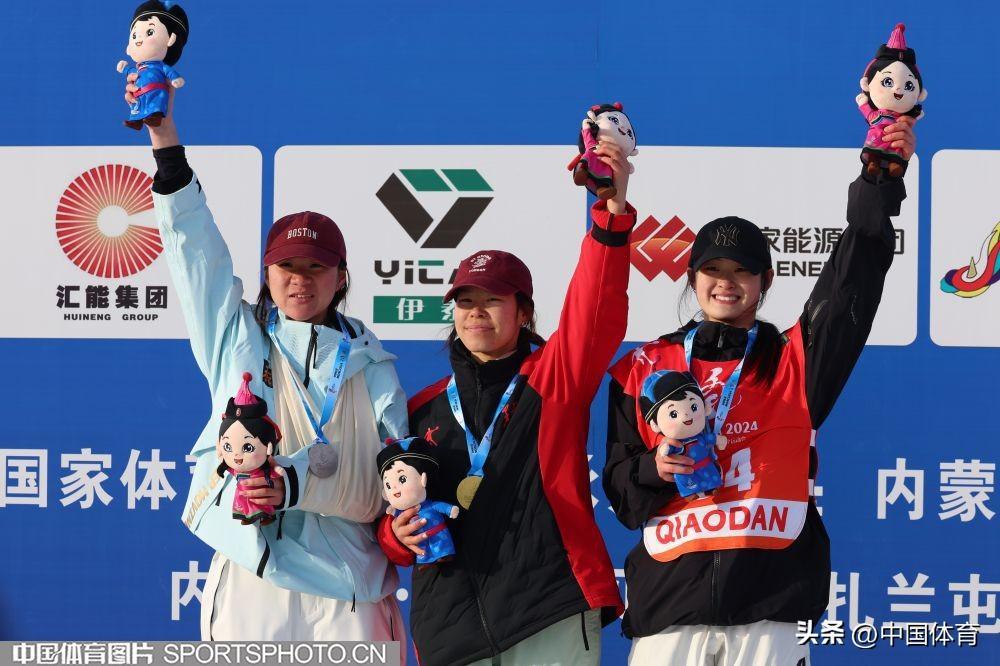 中國體育訊 2月26日,第十四屆全國冬季運動會自由式滑雪女子U型場地技巧公開組決賽,在內蒙古扎蘭屯金龍山滑雪場舉行。黑龍江隊張可欣以90.50分獲得金牌,山東隊李方慧和河北隊李沁源分獲銀牌和銅牌。(中國體育圖片 安靈均 攝)張可欣在比賽中張可欣在比賽中張可欣在比賽中張可欣在比賽中張可欣在比賽中(左起)亞軍山東選手李方慧、冠軍黑龍江選手張可欣和季軍河北選手劉沁源在頒獎儀式上