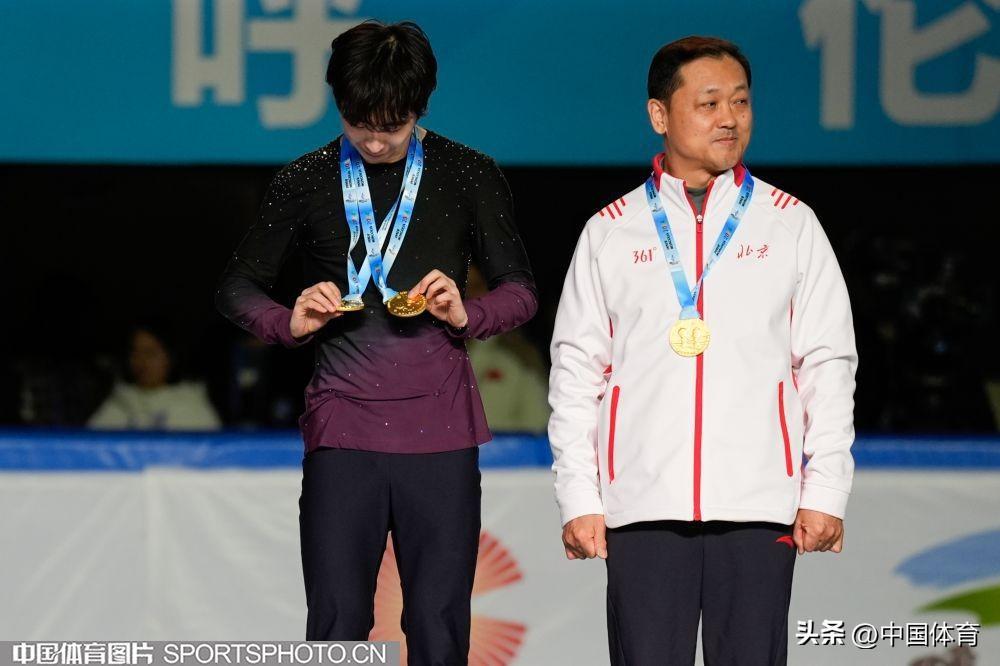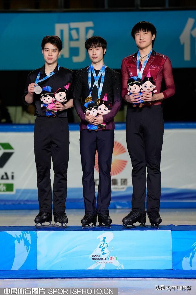 中國體育訊 2月26日,第十四屆全國冬季運動會花樣滑冰公開組男子單人滑比賽在內蒙古冰上運動訓練中心短道花樣館舉行。北京隊金博洋拿到全場最高分173.89分,總分267.49分當仁不讓奪取金牌。廣東隊戴大衛和黑龍江的韓文寶分獲銀牌和銅牌,兩人的總分分別爲235.23分和213.25分。(中國體育圖片 魏徵 倪敏哲 攝)