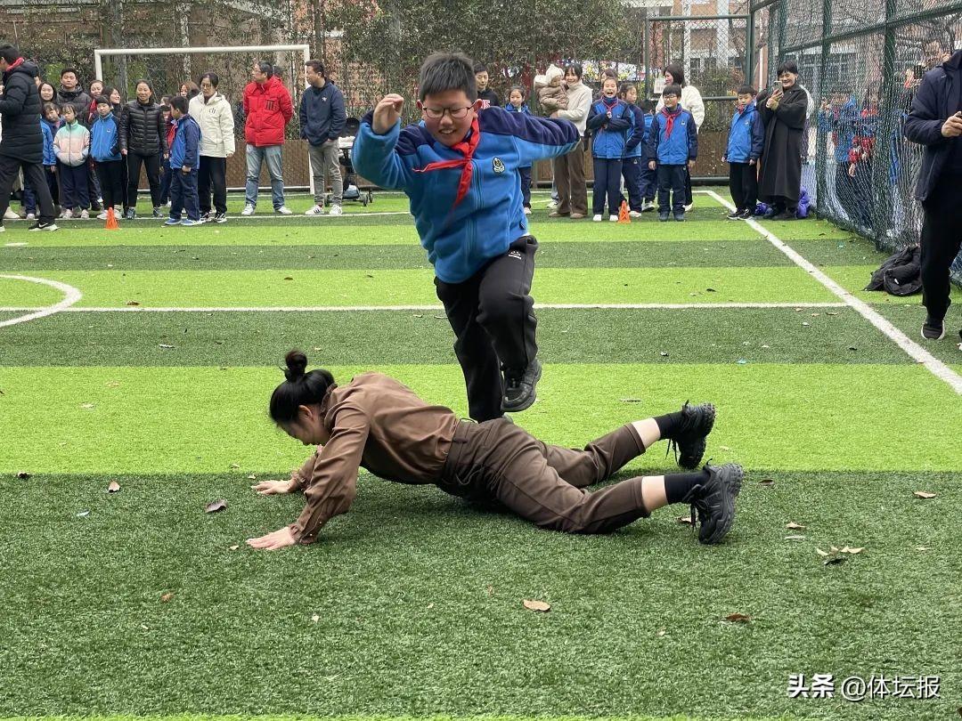操場上傳來歡聲笑語,原來這是該校第十屆“校園吉尼斯”挑戰賽,全員個人賽面向全校學生,比賽設有“繩採”飛揚(1分鐘跳繩)、柔韌有餘(坐位體前屈)、奮力起追(1分鐘仰臥起坐)等項目;另外,今年還新增了親子賽,根據不同年齡孩子的運動能力,分年級段設置了“龍騰虎躍·跳跳龍”“龍轉乾坤·躍躍龍”和“龍驤虎步·蹦蹦龍”三項比賽。