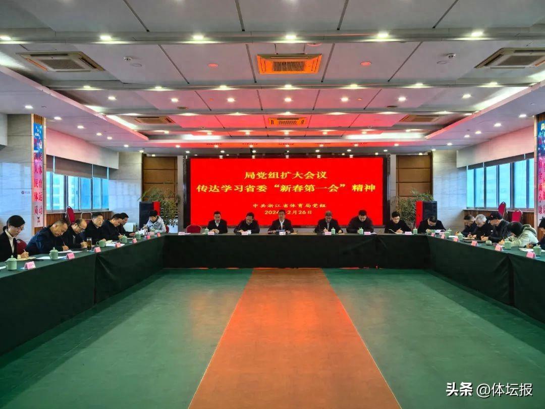 2月26日,省體育局黨組召開擴大會議,深入學習貫徹省委“新春第一會”精神,持續推動“八八戰略”走深走實,全力打造高素質幹部隊伍、高水平創新型人才和企業家隊伍、高素養勞動者隊伍大會。黨組書記、局長鄭瑤主持並講話。