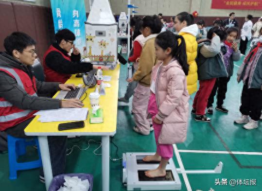 2月26日,杭州四季青小學體育館內排起了長隊,學生們有的脫掉鞋子站在了一個玻璃儀器上檢測足弓,有的把手伸進一個“小房子裏”測骨齡,還有一部分學生站在“秤”上稱體重……這是由浙江省全民健身中心發起並主辦的“全民健身·成長護航”青少年公益體質監測活動現場。當天,杭州市四季青小學全校800餘名學生參加了公益體質監測。
