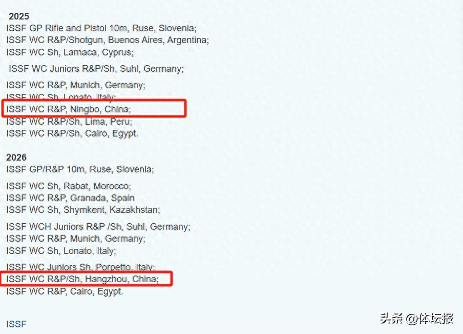 日前,國際射聯官網公佈,經國際射擊運動聯合會執委會會議研究決定,寧波、杭州正式獲得2025年、2026年國際射聯射擊世界盃舉辦權。