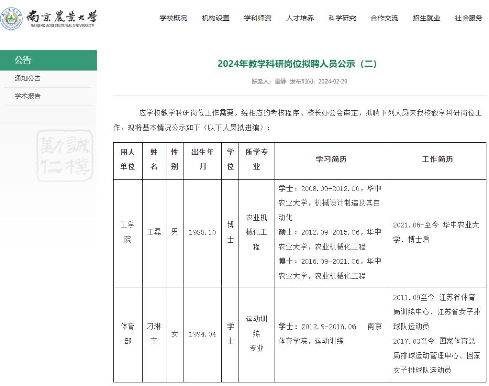 最近,正在集訓的她,再次傳來好消息,有網友看到在南京農業大學的一個任職公告上,有寫到刁琳宇的名字。據瞭解,她將入職南京農業大學體育部,擔任教學科研崗位。雖然目前刁琳宇依舊在役,而且還會代表國家隊參加2024年的幾個重大比賽,但從這一次的任命來看,刁琳宇退役之後的安置估計已經確定了。
