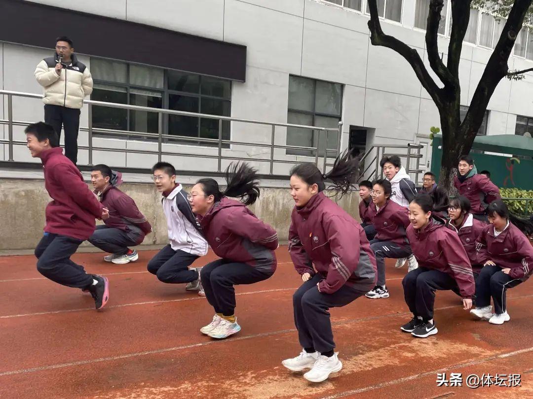 3月6日,記者來到杭州四季青中學,雖然當天陰雲密佈,但操場上的訓練氛圍依舊火熱——初三學生正在體育老師的指導下有序進行體能、專項、慢跑等訓練,操場上還響起了跳繩專屬音樂,幫助學生找到跳躍節奏。