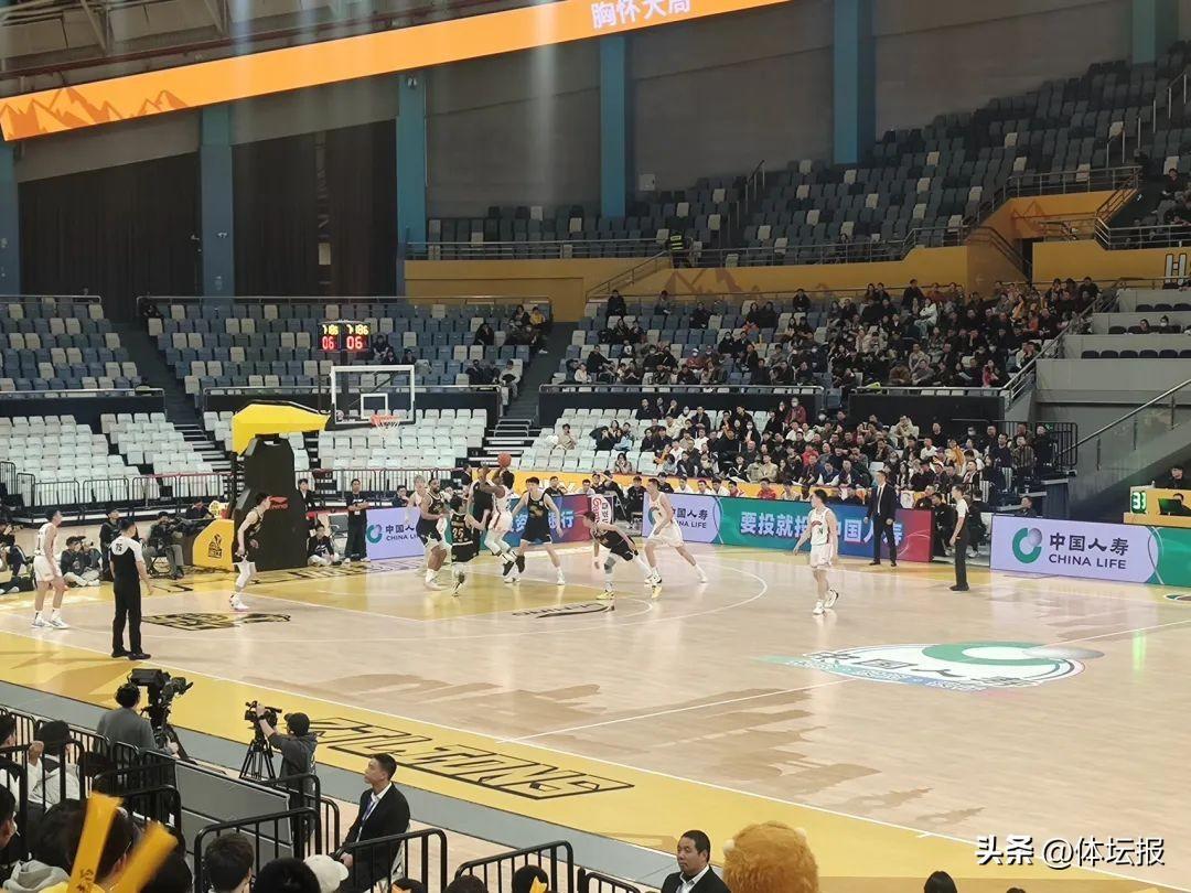 跳球后,上海率先進攻,戴昊轉身中投顛進籃筐,胡金秋強打籃下可惜刷筐而出。隨後,沃頓三分打鐵,胡金秋搶下前場籃板打進。布萊德索接連利用突分爲上海創造三分機會,但換來的卻是頻頻打鐵。
