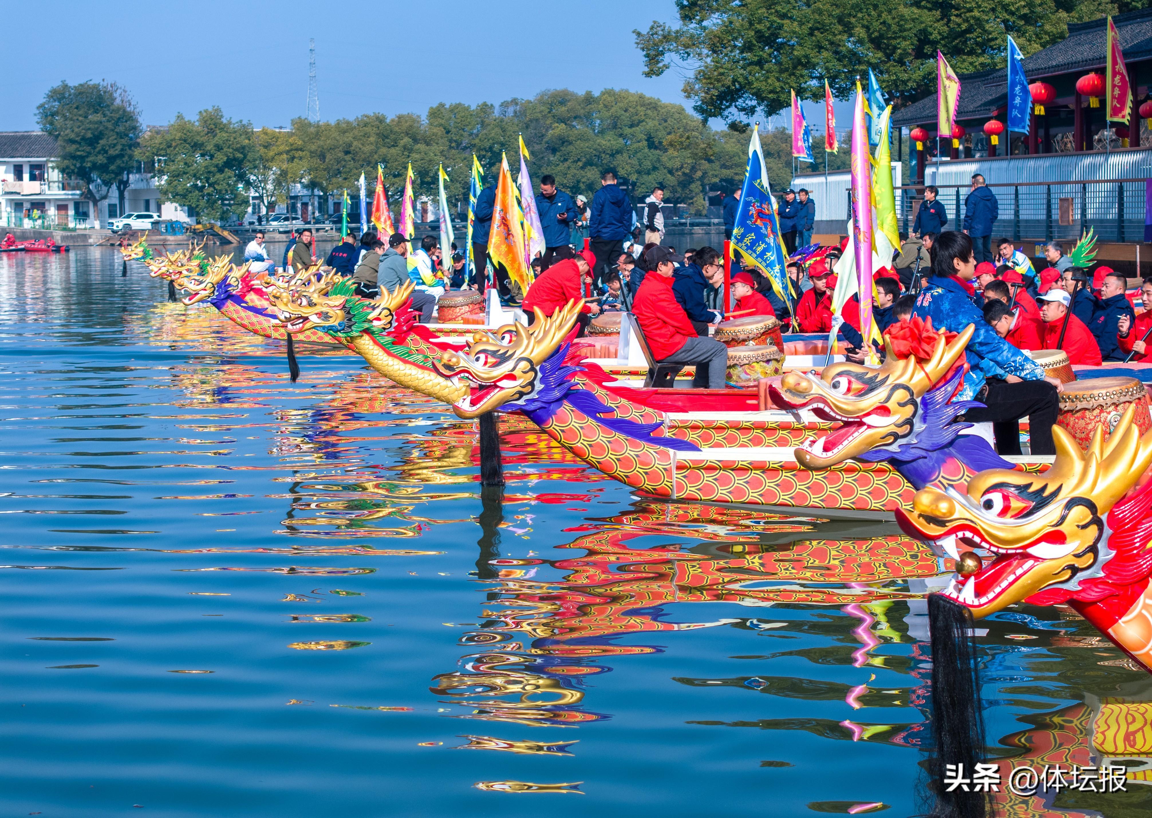 “1,2,3,龍舟,起!”鑼鼓齊擂,20支龍舟競相入水,載着父老鄉親的美好祝福,載着對新一年的美好期待,一艘艘龍舟劈波斬浪,從龍舟基地劃出,兵分兩路,起航遊江,槳落水花四起,岸邊鑼鼓喧天,聲浪同水浪此起彼伏。