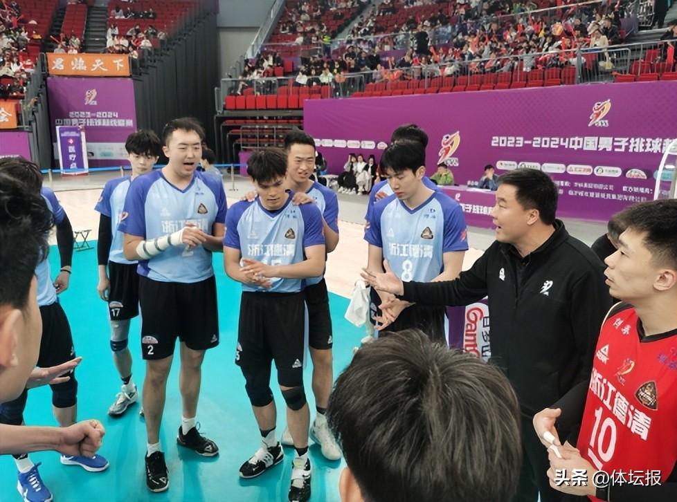 3月17日下午,2023-2024賽季中國男子排球超級聯賽第三階段“8進4”淘汰賽繼續進行。浙江德清男排在客場迎來與山東儒辰男排的“生死戰”,最終以3∶1戰勝對手,連續四個賽季闖進四強。