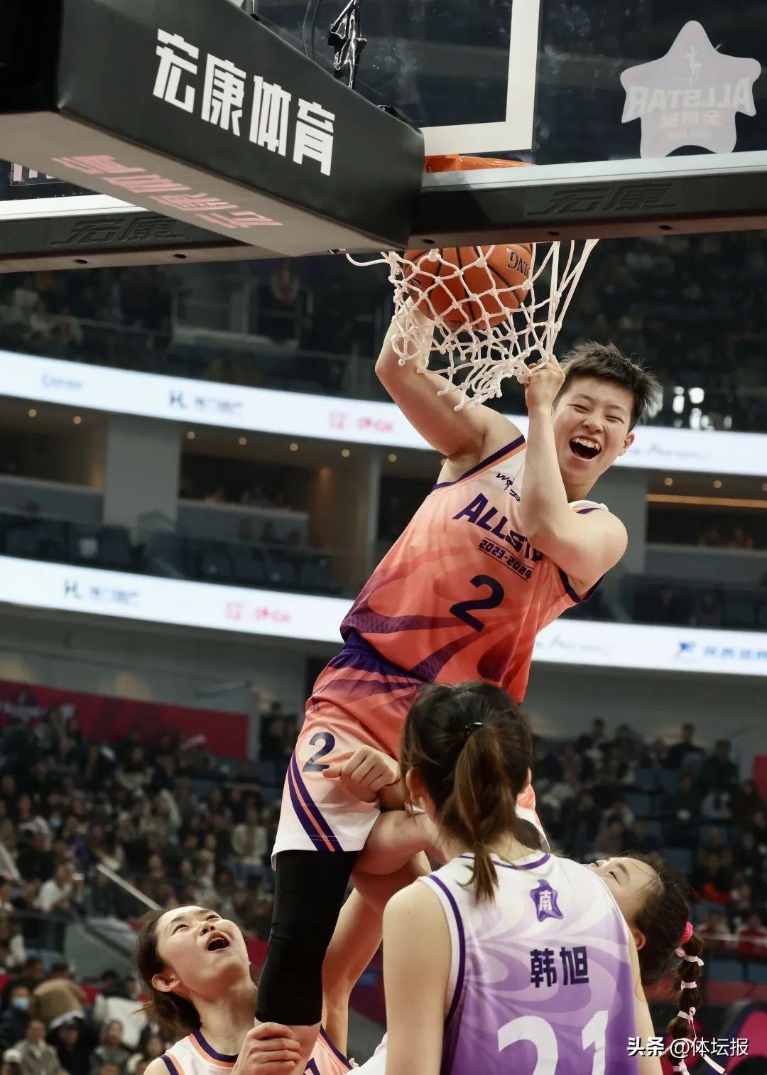 賽場上,球員們既展現了球技,還表演了花式“扣籃”和精彩舞技。浙江稠州銀行女籃王佳琦、萬濟圓、仙揚·帕克相繼登場。最終119-105南區明星隊戰勝了北區明星隊,韓旭拿到37分,收穫MVP。