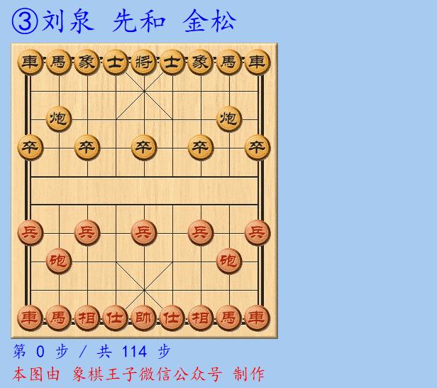 當下,第三局,劉泉稍生保守之心,起馬對挺卒,速兌雙車,入殘局雙馬兵仕相全對雙馬卒士象全114手穩平。