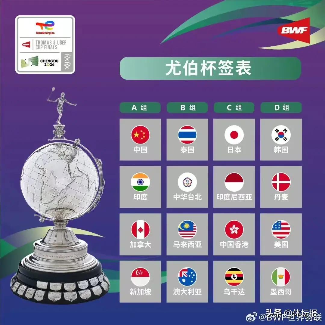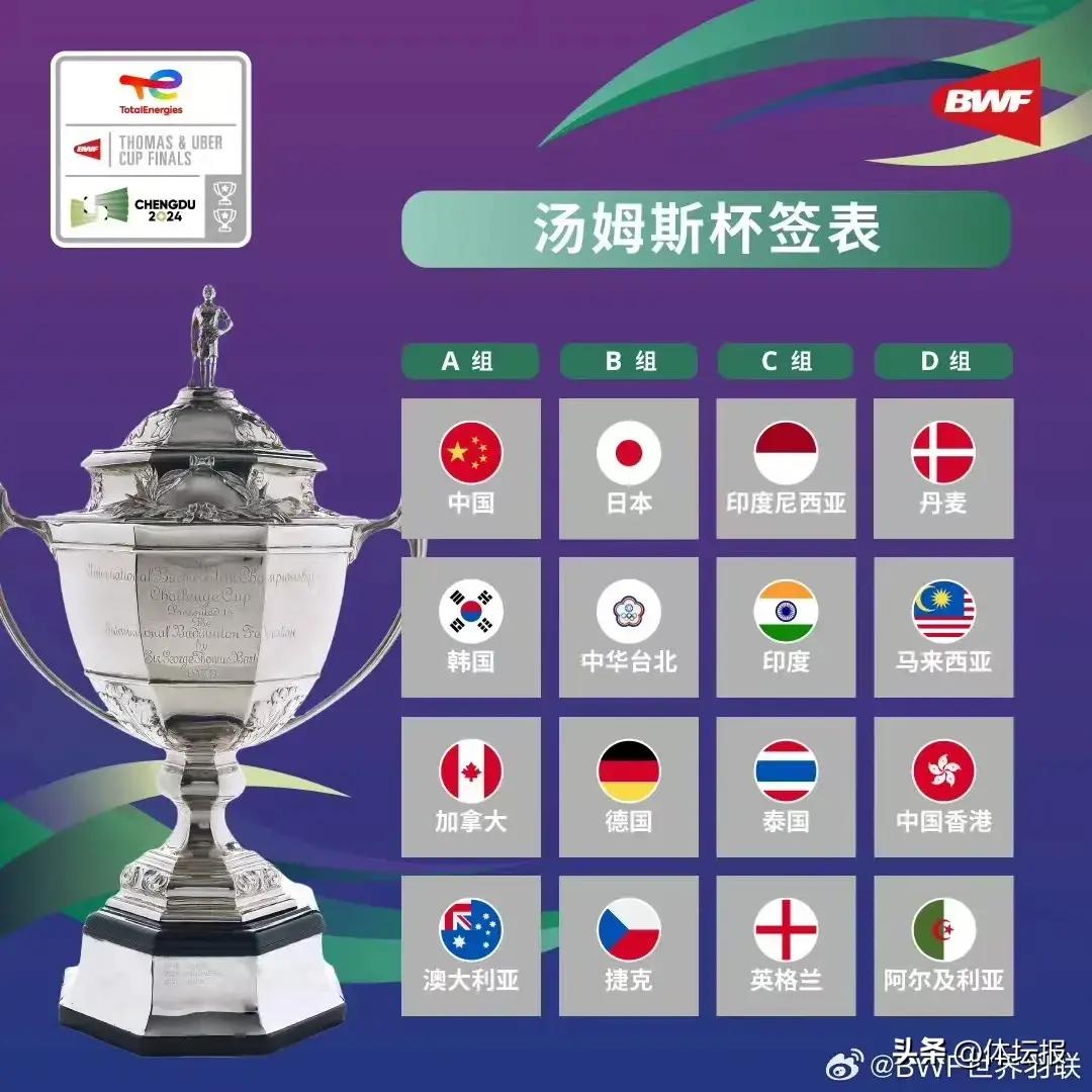 3月22日,成都2024湯尤杯抽籤儀式正式舉行。在尤伯杯抽籤中,作爲一號種子的中國隊與印度、加拿大、新加坡分到一組。在湯姆斯杯抽籤中,中國隊與韓國、加拿大、澳大利亞分到一組。2024湯尤杯將於4月27日至5月5日在成都高新體育中心舉行。
