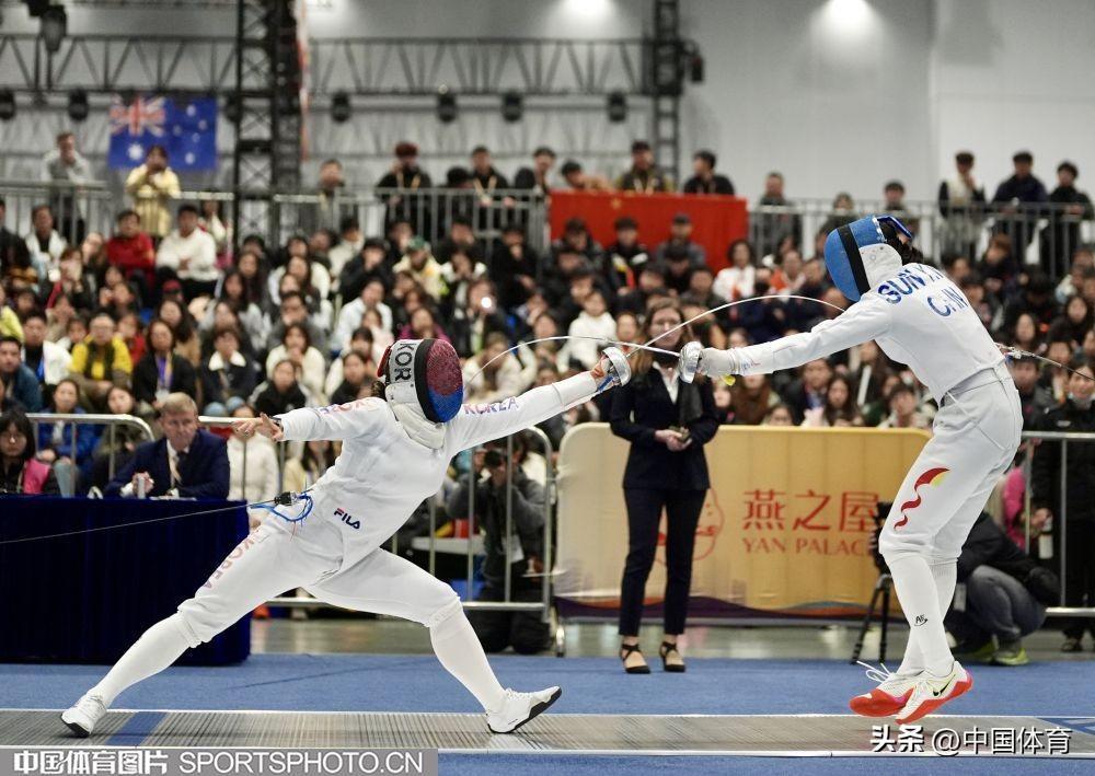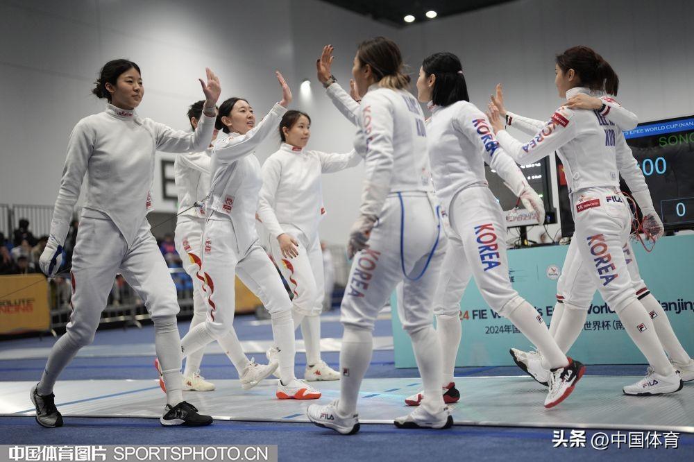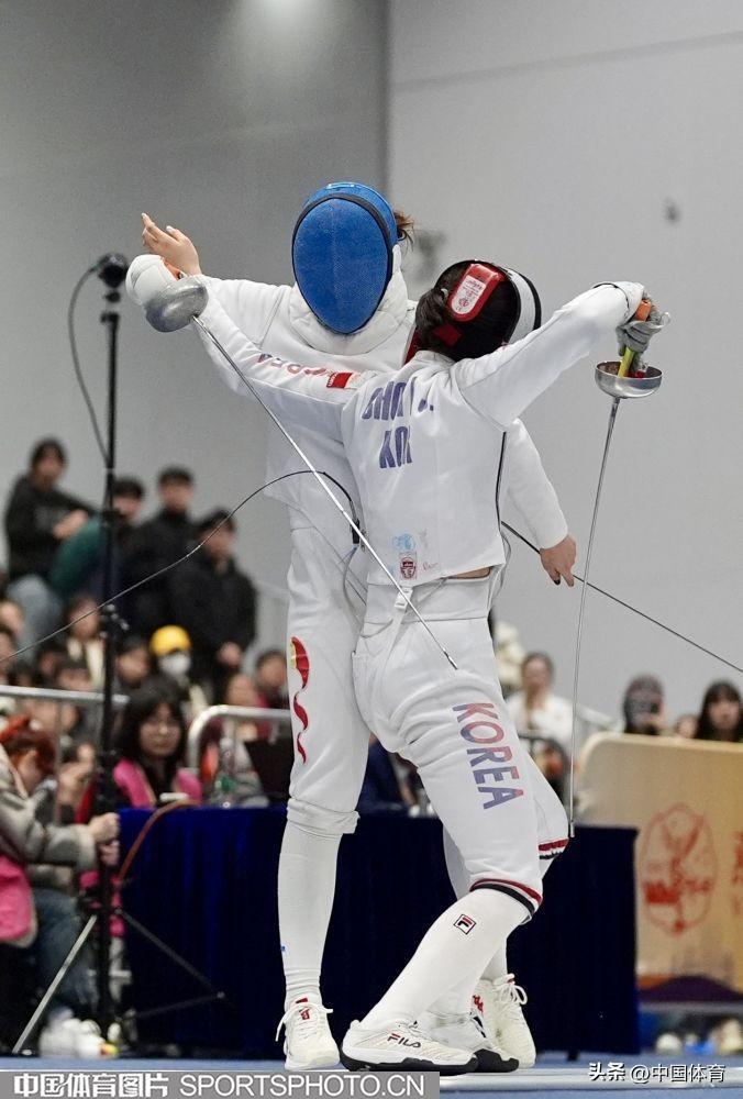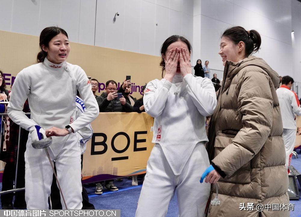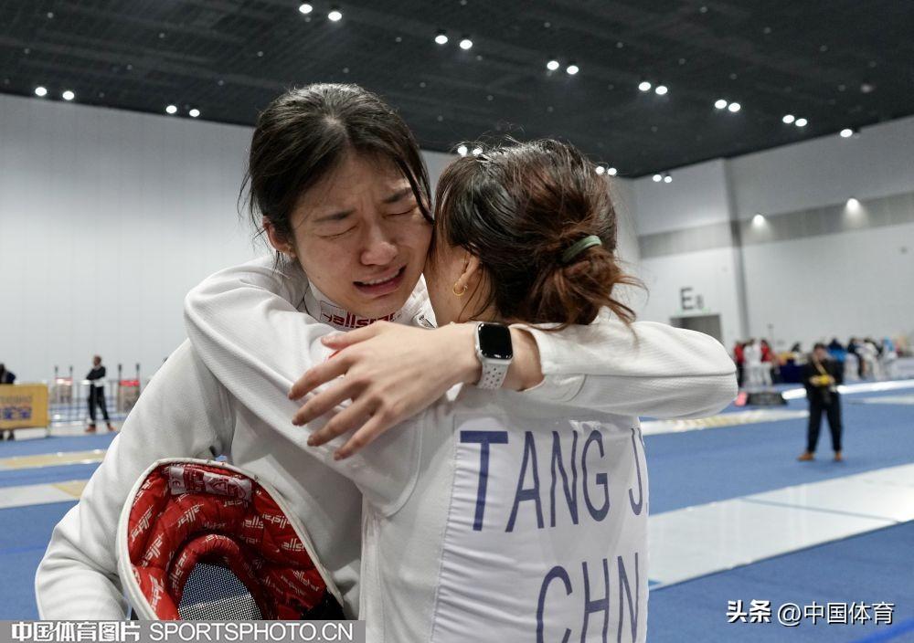 中國體育訊 3月24日,2024年國際劍聯女子重劍世界盃(南京站)在江蘇省南京市揚子江國際會展中心繼續進行。在女子團體賽中,中國隊接連戰勝中國香港隊、韓國隊晉級半決賽,且奧運積分反超中國香港隊獲得巴黎奧運會入場券。賽後,老將孫一文和隊友們喜極而泣。(中國體育圖片 倪敏哲 攝)