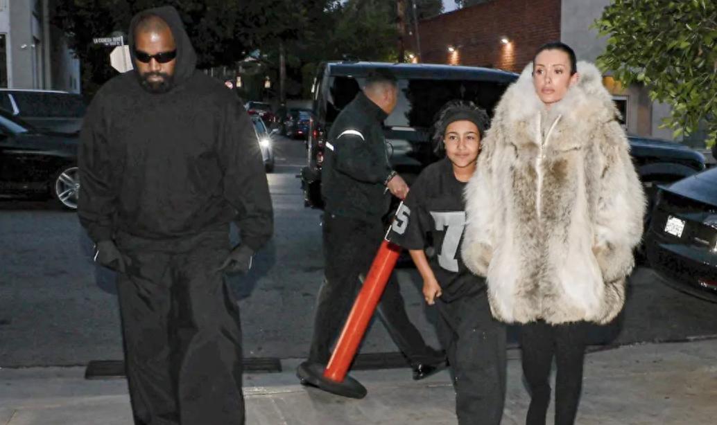 比安卡穿了一件華麗貂絨大衣,有種暴發戶的既視感,特別浮誇,比侃爺還嚴實,女兒小西北一直躲在後媽身後,給狗仔做着鬼臉,看起來她真的很喜歡比安卡,神態顯得非常放鬆。