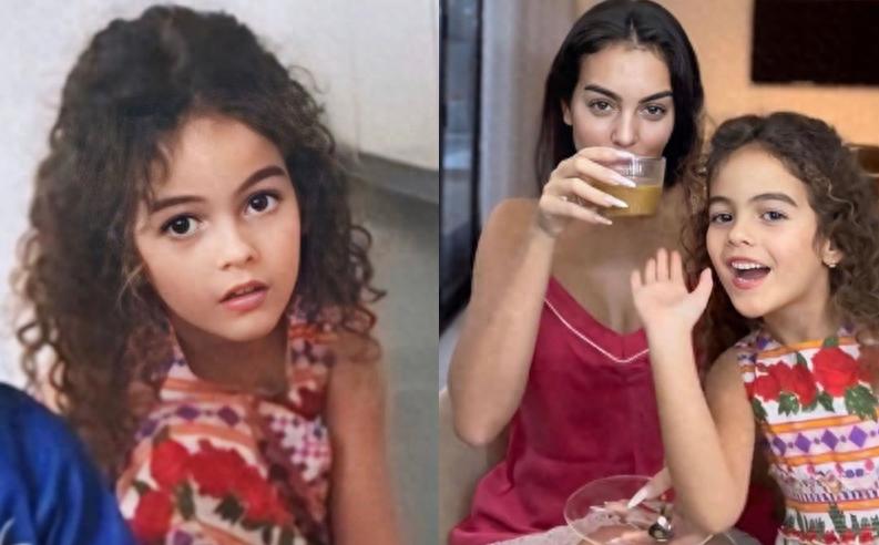 C羅家衆多孩子中,女兒阿拉娜可以說是最有話題度的了,她機靈可愛,活蹦亂跳,存在感極高,也最討C羅的偏愛與歡心。時間一晃,阿拉娜慢慢長大,既是妹妹又是姐姐,精緻的五官,深邃的眼睛,讓外界對她顏值的期待無限拉滿,她的這張臉完美融合了喬治娜與C羅的特點,非常有辨識度。