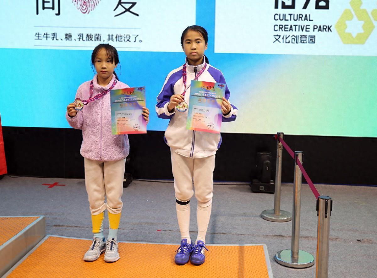 鄧梓優(右)收穫2024年“愛擊劍”廣州公開賽u12女佩個人銅牌