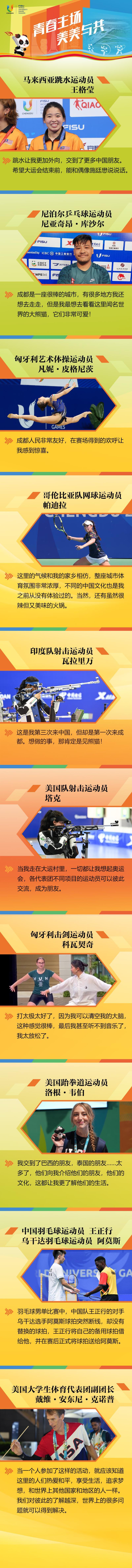 國際在線消息:世界因多彩文明而生機勃勃,在成都大運會舉辦的12天中,大運會在世界各地年輕人之間形成了相互交流、理解的紐帶。