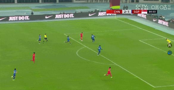 由於新加坡隊有球員受傷離場,而球隊又早早用完了換人名額,因此新加坡隊的人數優勢蕩然無存,這激發了國足的鬥志。第84分鐘,國足鎖定勝局!高天意中場斜傳,武磊拿球一條龍直插對方禁區左路,一腳勁射飛進球門遠角,3:1!武磊梅開二度!