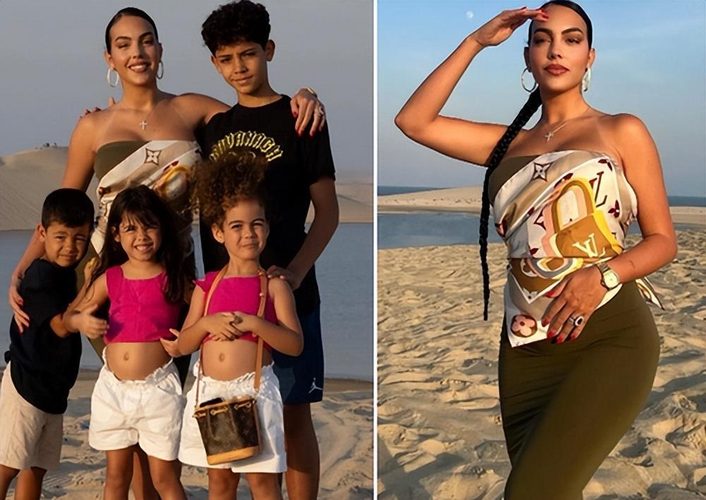 葡萄牙隊在1/8決賽中以6-1狂勝瑞士隊晉級八強,C羅雖然沒能躋身首發陣容,但是替補出場的表現也很不錯。而喬治娜爲了不打擾C羅和葡萄牙隊備戰與摩洛哥隊1/4的決賽,帶着4個孩子們來到了沙漠進行度假,期間也是沒有忘記大秀身材。在喬治娜曬出的照片中,她本人依然是光彩照人,雖說是帶着孩子們來度假,但是卻打扮的光鮮亮麗,不僅帶着名貴的首飾,而且還不忘在鏡頭前大擺造型。
