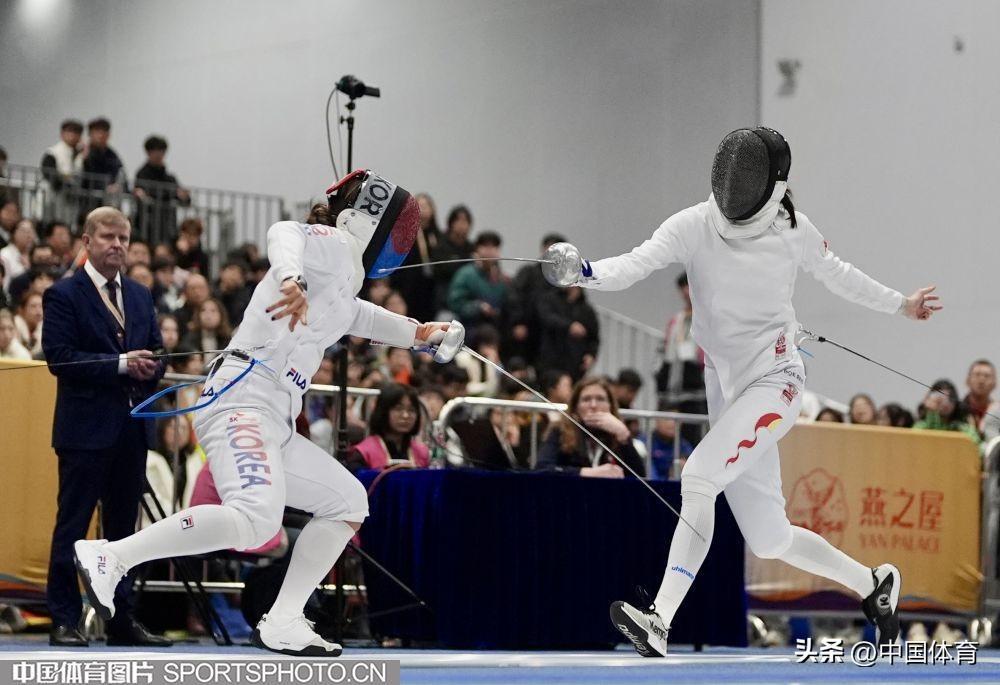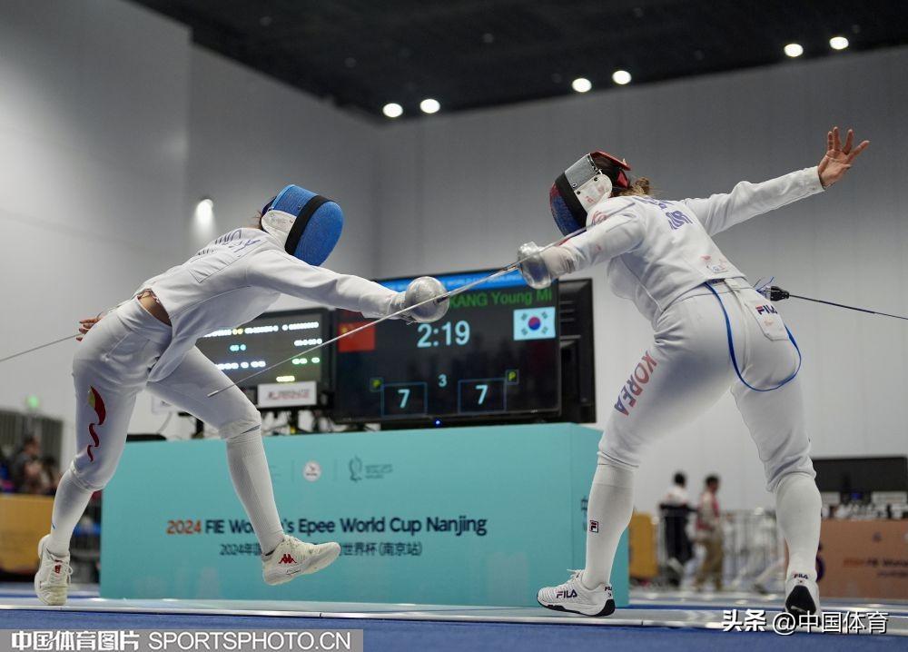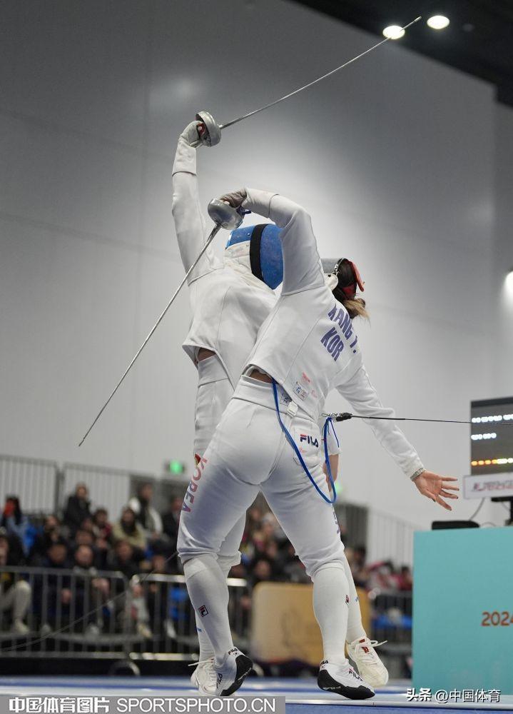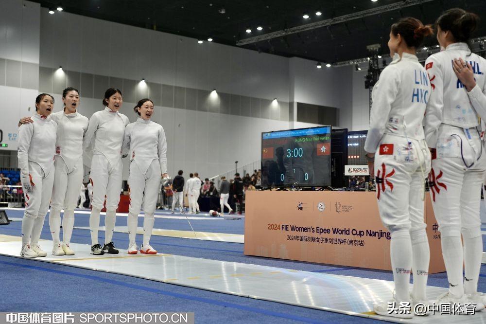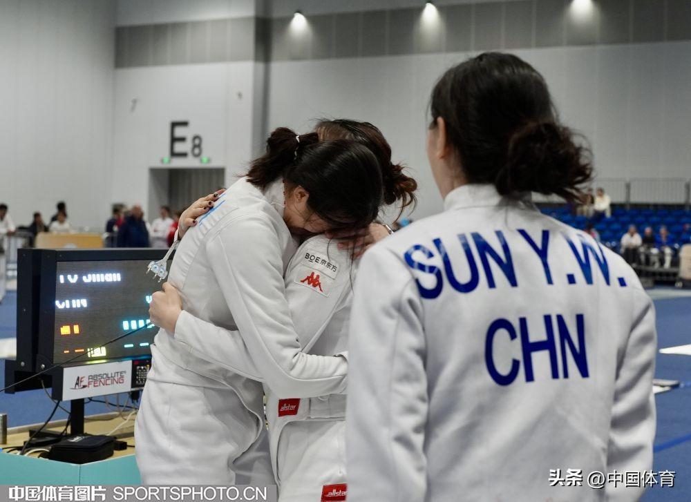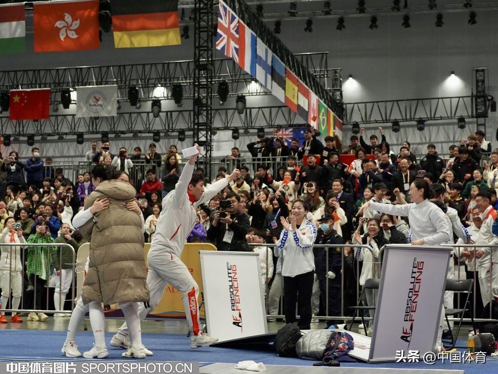 中國體育訊 3月24日,2024年國際劍聯女子重劍世界盃(南京站)在江蘇省南京市揚子江國際會展中心繼續進行。在女子團體賽中,中國隊接連戰勝中國香港隊、韓國隊晉級半決賽,且奧運積分反超中國香港隊獲得巴黎奧運會入場券。賽後,老將孫一文和隊友們喜極而泣。(中國體育圖片 倪敏哲 攝)