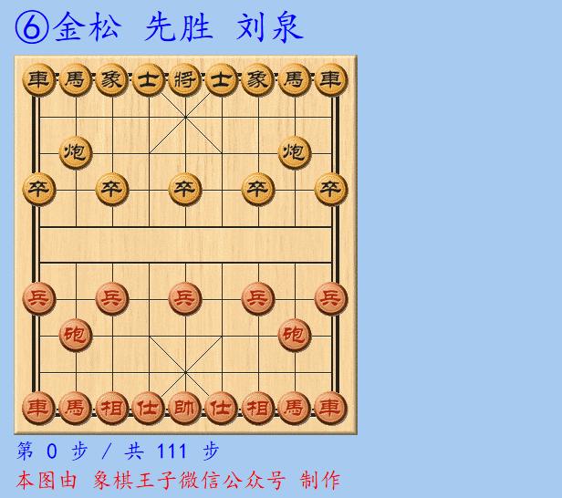 第六戰,金松執先仙人指路對卒底炮,中盤車馬炮強攻,111手完成了鐵門栓側翼絕殺。