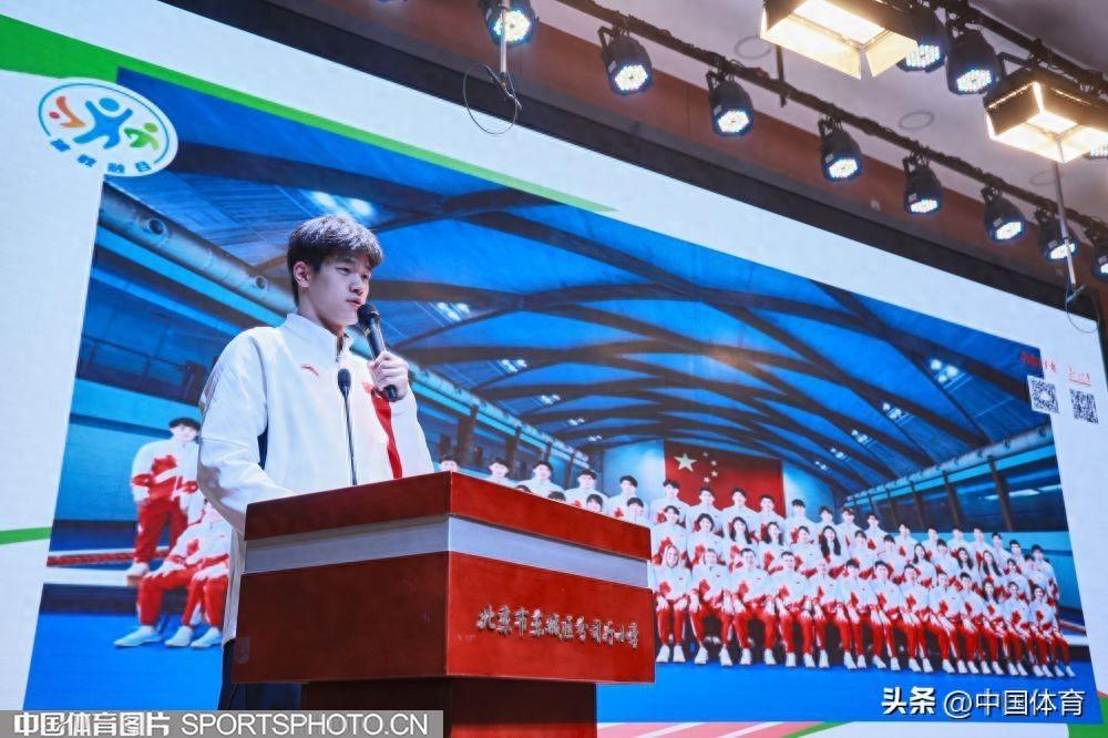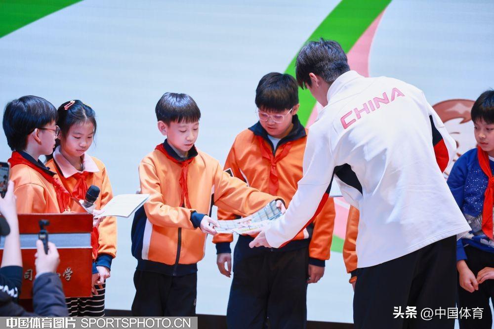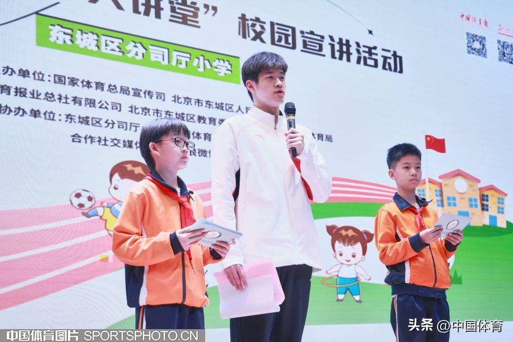 中國體育訊 3月27日,“中華體育精神大講堂”校園宣講、“冠軍體育課”運動員進校園系列活動在北京市東城區分司廳小學舉行。游泳世界冠軍潘展樂作爲當天的“特派體育老師”,與現場的學生們互動,講授了一堂快樂的體育課。(中國體育圖片 鹿麟 攝)
