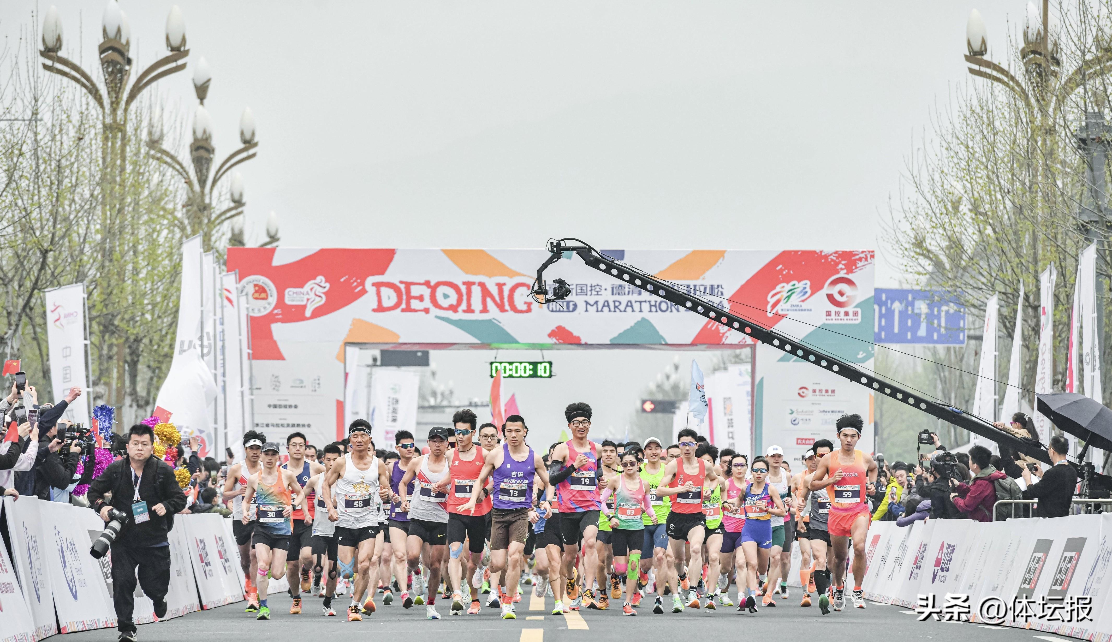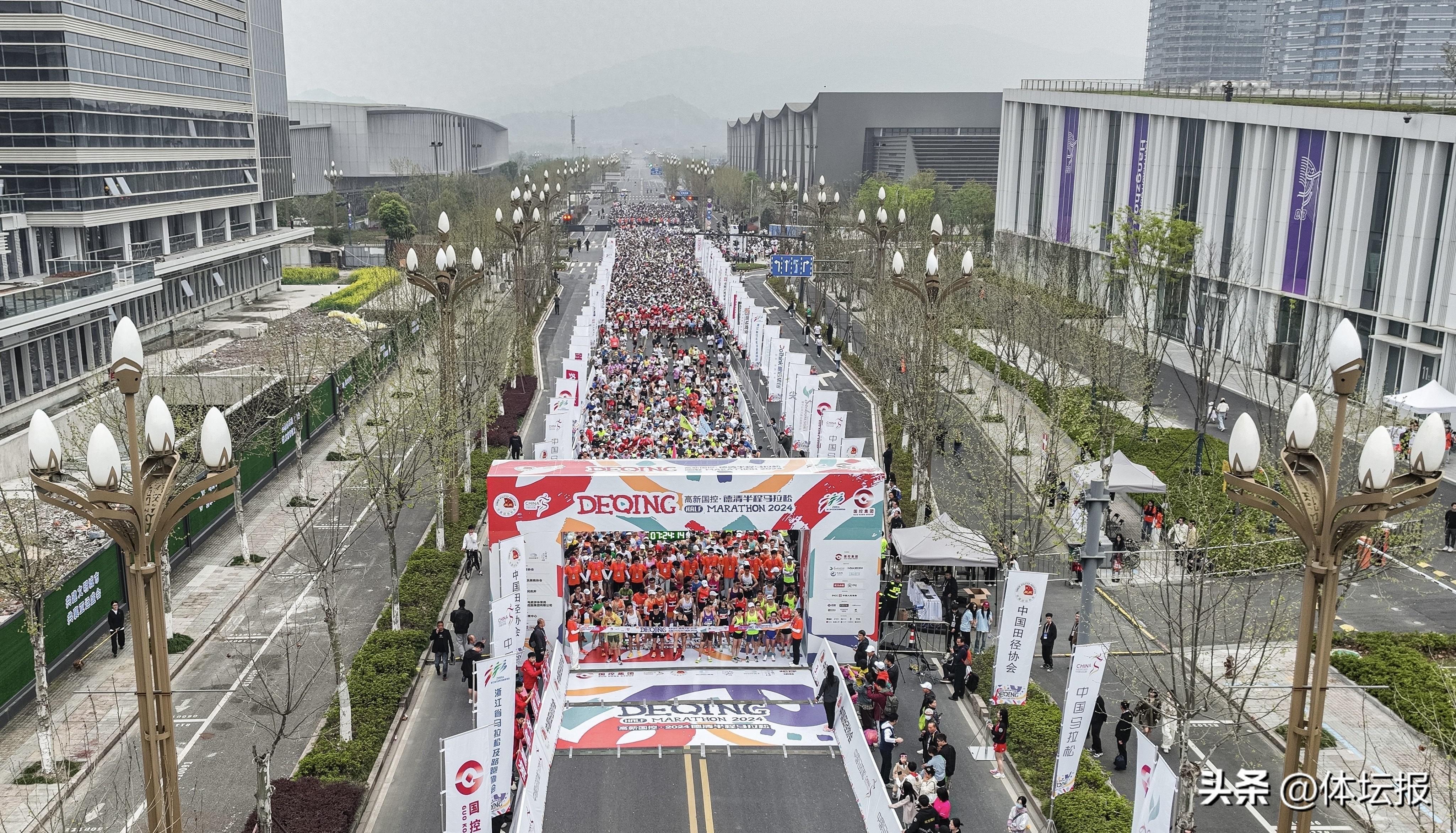 3月31日,高新國控·2024德清半程馬拉松在德清地理信息小鎮鳴槍開跑。來自全國31個省(區、市)以及11個國家和地區的10000名參賽選手奔跑。