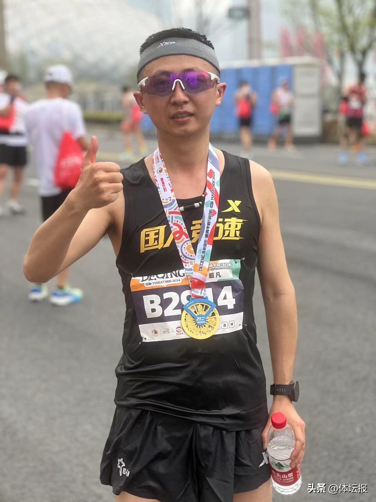 “今天我們都知道有好幾場馬拉松同時進行,但是我們還是選擇了德馬。昨天下午我們就從長興過來了。”說話的是黎明腳步跑團隊成員胡青龍,已經有十多年的跑齡了。“2013年夏天,由於沒有什麼愛好就打算找個愛好,發現跑步最簡單。那時候也沒有什麼裝備,穿件球衣加雙運動鞋就去了。”而說起爲什麼會選擇德馬,胡青龍回憶,其實2019年的時候在這裏跑過一次,當時感覺就非常好。今年,德清半程馬拉松也成爲了是中國田徑協會A1類賽事,所以再來體驗下,這次一共來了三個人。“德清道路平坦,容易出pb。本來還想當配速員,當時沒有選上。不過參加的意義在於不斷挑戰自己,有所突破。”