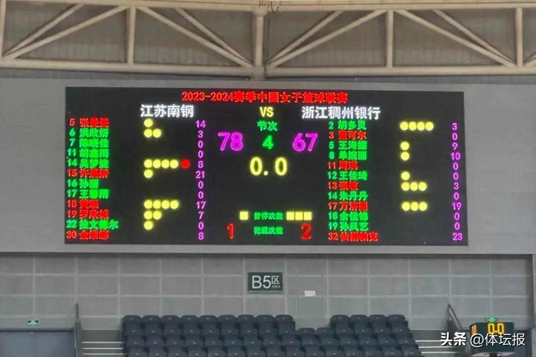 3月31日,2023-2024賽季WCBA聯賽季後賽四分之一決賽第三輪比賽打響。浙江女籃客場67-78不敵江蘇女籃,大比分1-2止步本輪系列賽,獲得聯賽第五名。