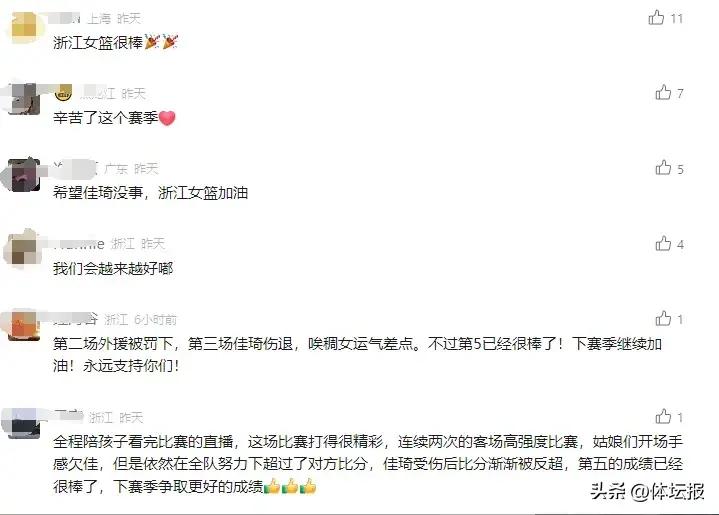 作爲一支主打團隊籃球的隊伍,浙江女籃本土球員都是浙江隊青訓出品,球隊上下配合默契,即便身體條件在聯賽不佔優勢,但是團隊凝聚力和敢打敢拼的精神讓人印象深刻。“最終結果比較可惜,但是和上賽季相比看到了隊員們的進步,感謝大家。”浙江女籃主教練顧佳晴說。