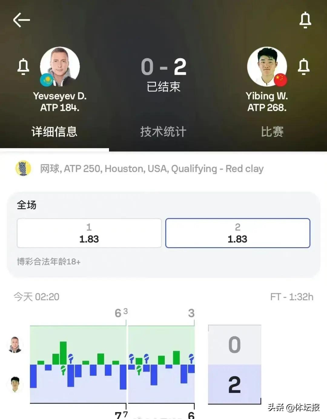 4月1日凌晨,ATP250休斯頓站資格賽決勝輪進行,浙江選手吳易昺耗時1小時32分鐘,以7:6(3)/6:3戰勝了資格賽4號種子耶夫謝耶夫,成功躋身正賽。這是吳易昺自去年美網之後,首次參加巡迴賽正賽的比賽,兩輪資格賽的勝利,也讓他拿到13個積分。