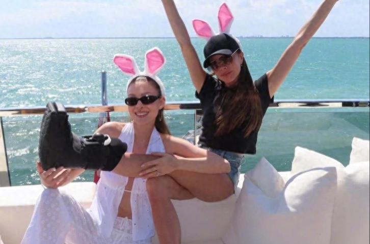 這次登上游艇,妮可拉穿了一件白色紗裙,中門大開,頗爲性感,而49歲的貝嫂則是盡顯少女身材,超短褲搭配黑色T恤,活力四射,一點都看不出中年媽媽的感覺。婆媳倆在這艘價值1.5億元人民幣的豪華遊艇上,玩得不亦樂乎。
