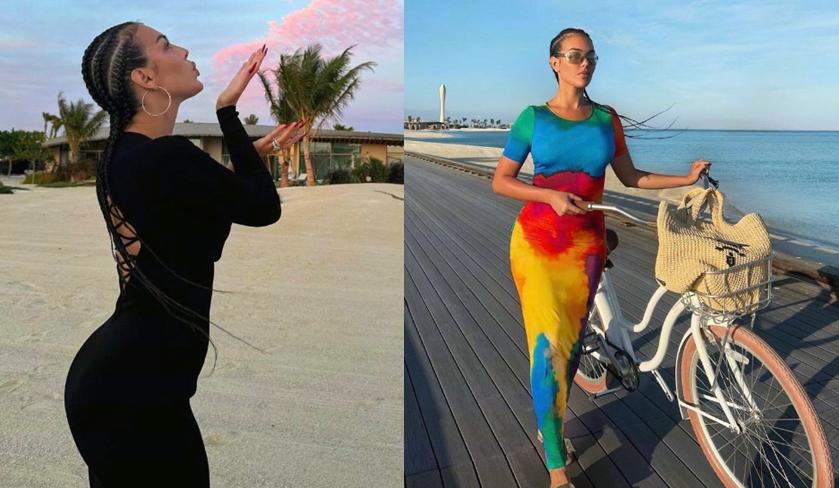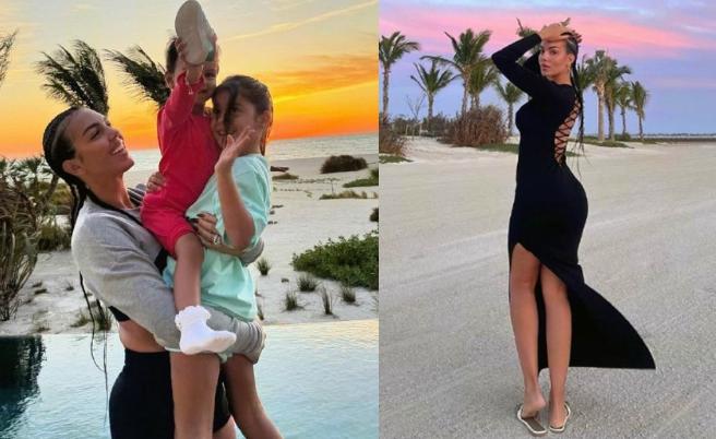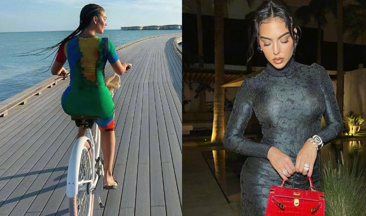 這次出遊,喬治娜也是帶了不少裝束,有爲健身準備的運動內衣,也有爲在沙灘擺拍的黑色露背裝,還有一條花紋豔麗繁複的連體長裙,總之,喬治娜時時刻刻都在秀身材,但必須承認,現在的她非常符合西方審美,前凸後翹,豐腴曲線絲毫不輸給金卡戴珊。