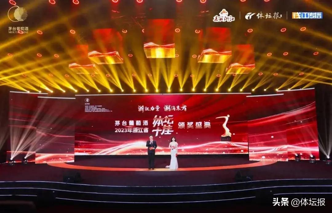 4月10日晚,由省體育局、浙江廣電集團指導,省體育記者協會主辦,浙江廣播電視集團錢江都市頻道、體壇報社承辦的茅臺葡萄酒·浙江省“體壇十佳”頒獎盛典,在浙江國際影視中心爲2023年浙江體育界的傑出代表“加冕”。副省長李巖益,國際奧委會委員、中國奧委會副主席李玲蔚和省政府副祕書長陸利偉、省體育局局長金志等出席。