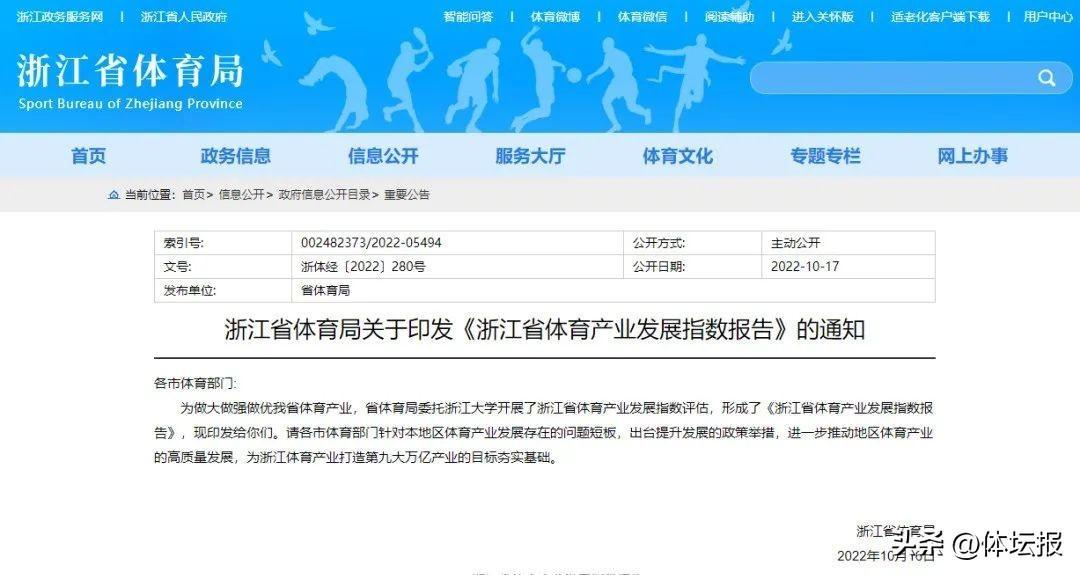 爲進一步推動地區體育產業的高質量發展,爲我省體育產業打造第九大萬億產業的目標夯實基礎。日前,省體育局委託浙江大學開展浙江省體育產業發展指數評估,率先發布《浙江省體育產業發展指數報告》(以下簡稱《指數》)。