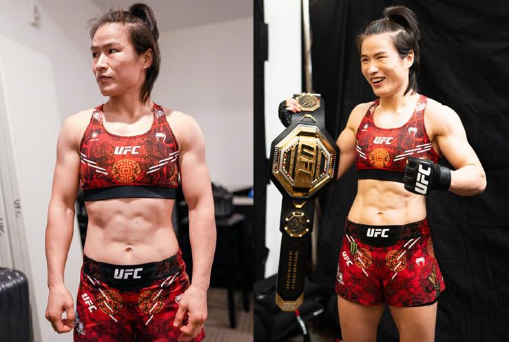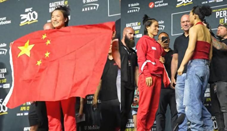 值得一提的是,在對視環節中出現了一個小插曲,張偉麗拿出五星紅旗,準備與閆曉楠一起舉起,但對方或許沒注意到張偉麗的舉動,對着鏡頭秀了一番肱二頭肌後,匆匆離開,只留下張偉麗一個人站在臺上,不過她還是展示了國旗,並且接過了屬於她的金腰帶。