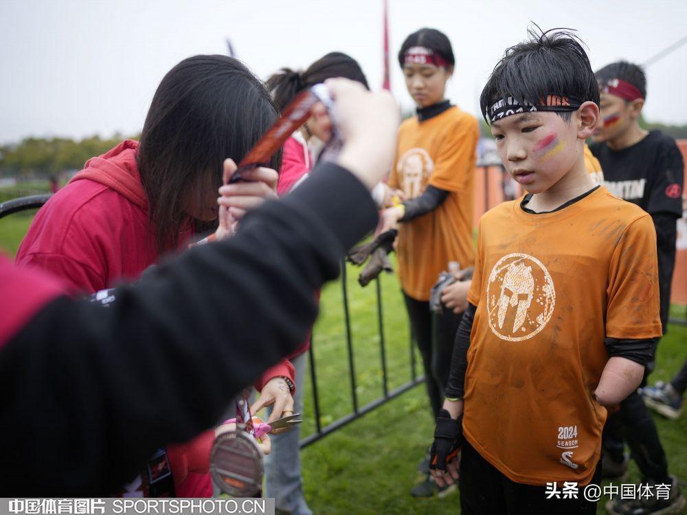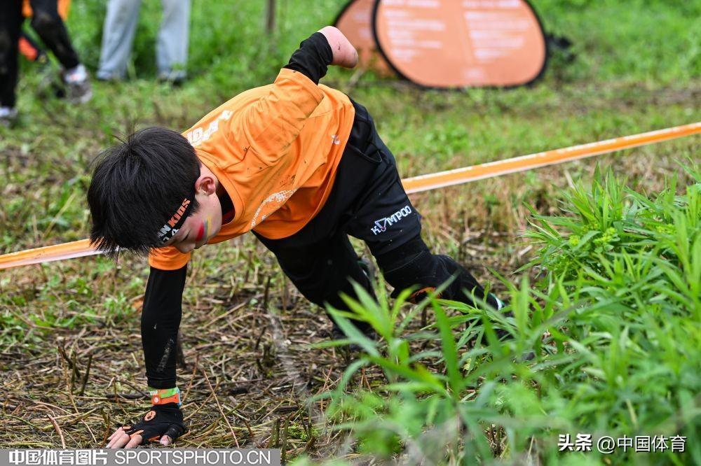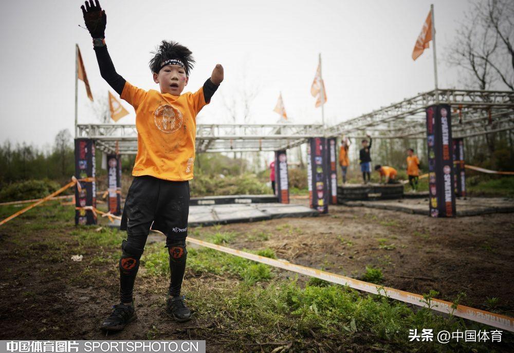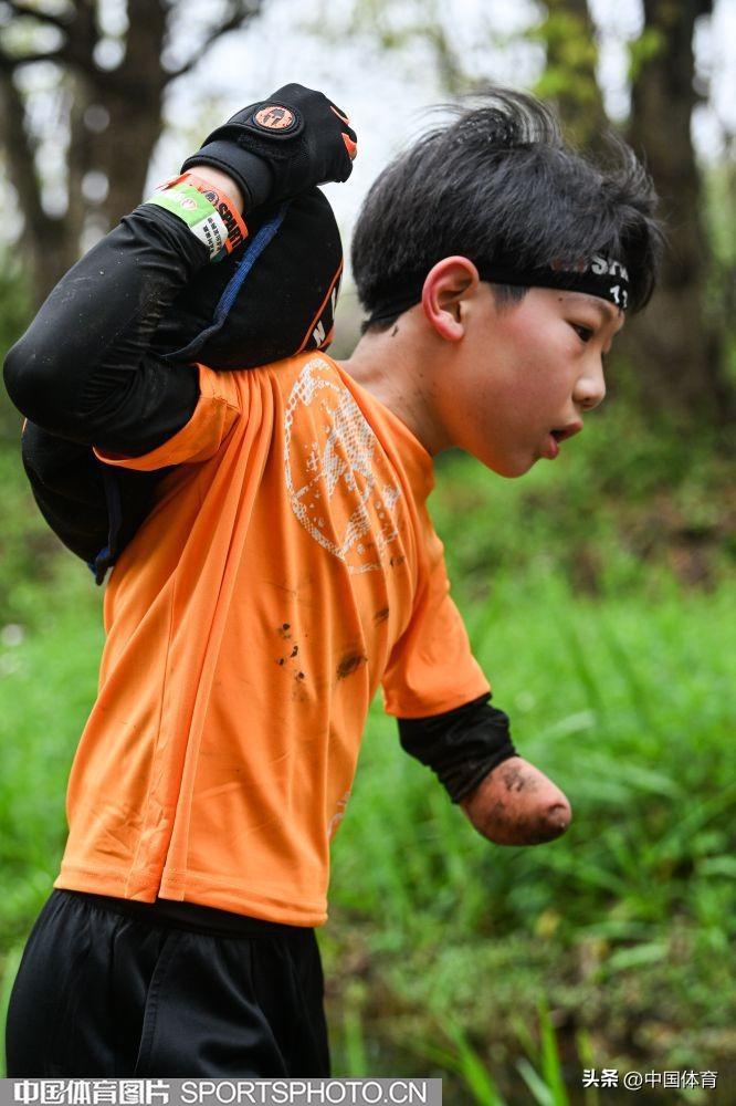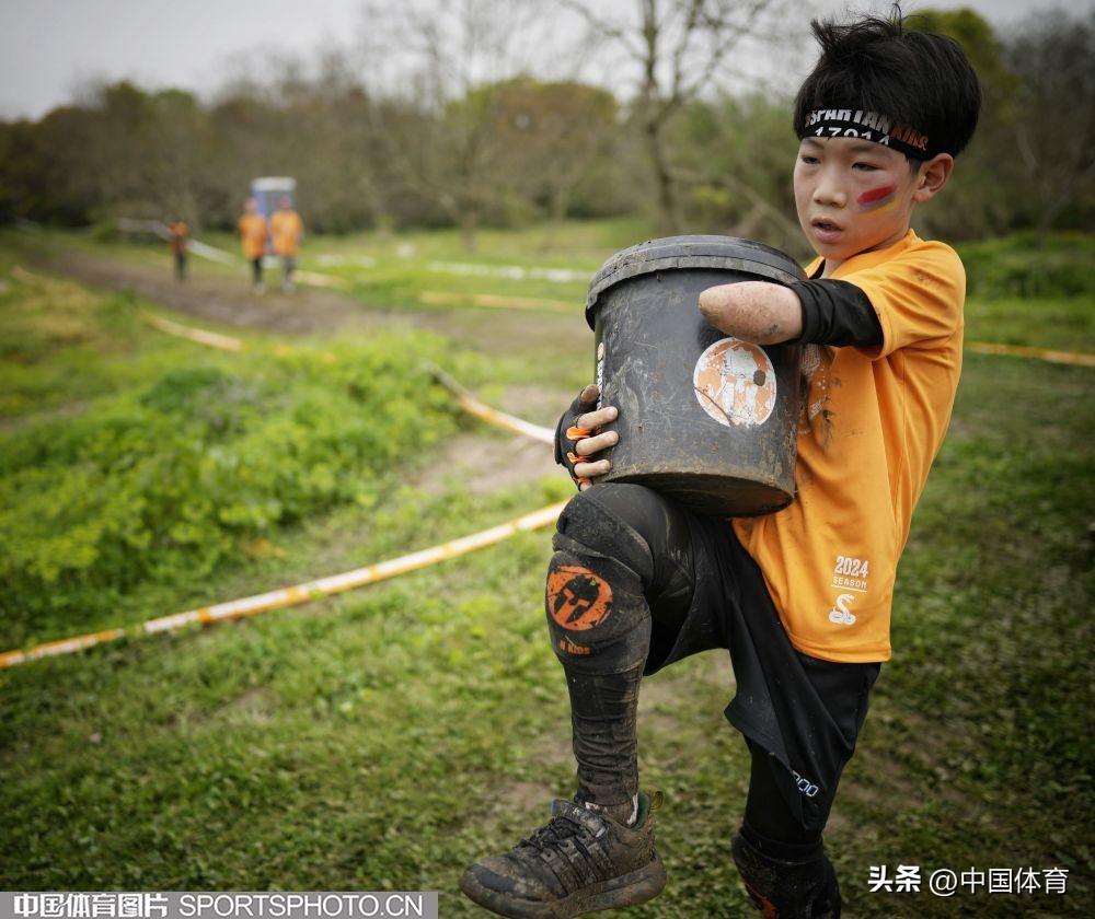 中國體育訊 4月13日,2024年斯巴達勇士兒童賽上海站首日賽事在上海濱海森林公園進行。來自江蘇的小勇士賁悅宸以43分48秒的成績完成了5公里27個障礙的挑戰,在公開組10-14歲組別暫列第二名。賁悅宸出生於江蘇南通海安,先天性左臂殘疾,父母在生活中經常鼓勵並陪伴他參加運動。圖爲賁悅宸在比賽中。(中國體育圖片 魏徵 白宇 攝)