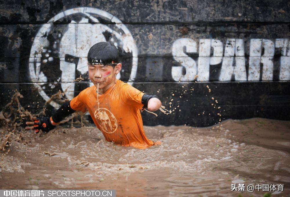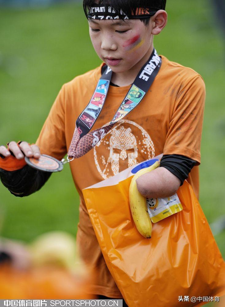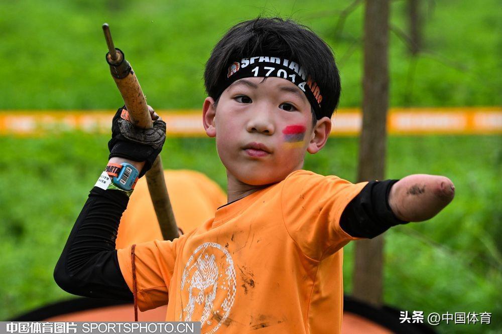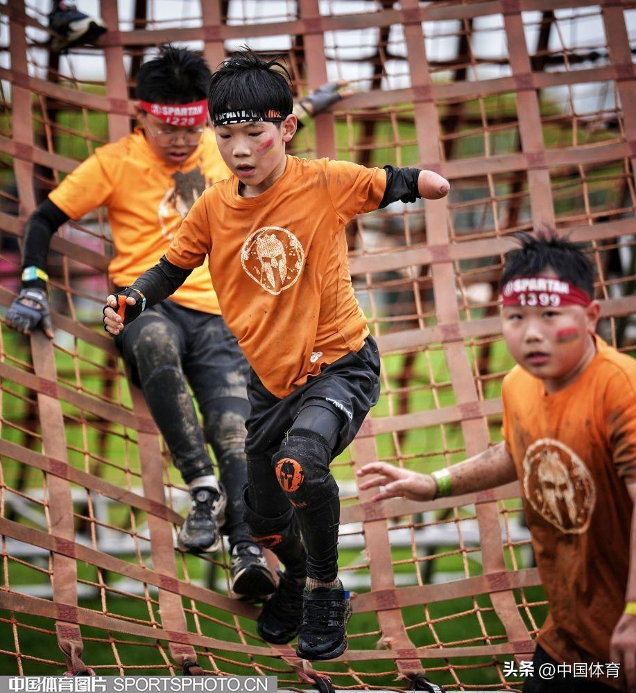 中國體育訊 4月13日,2024年斯巴達勇士兒童賽上海站首日賽事在上海濱海森林公園進行。來自江蘇的小勇士賁悅宸以43分48秒的成績完成了5公里27個障礙的挑戰,在公開組10-14歲組別暫列第二名。賁悅宸出生於江蘇南通海安,先天性左臂殘疾,父母在生活中經常鼓勵並陪伴他參加運動。圖爲賁悅宸在比賽中。(中國體育圖片 魏徵 白宇 攝)