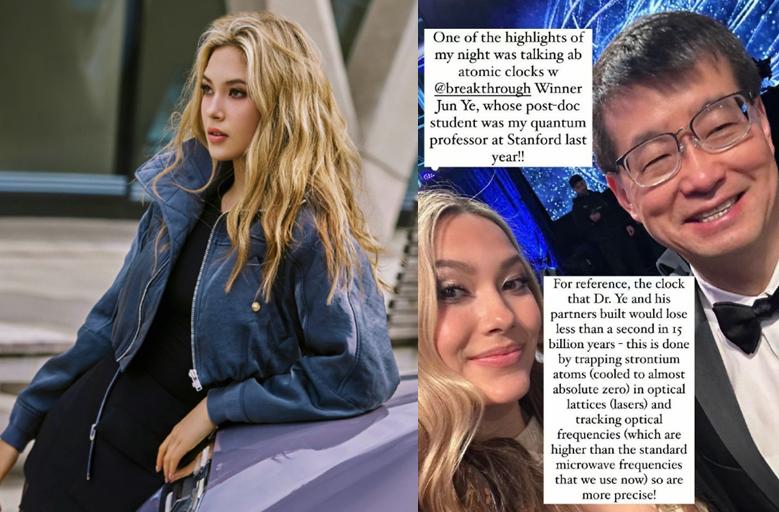 此外,谷愛凌還與鄧文迪親密合照,還與《沙丘》女主贊達亞同框,此外,身爲斯坦福大學的學生,谷愛凌還完成了“學術追星”,她與科學突破獎獲獎者葉軍打了照面,兩人還在私下聊了很久的原子鐘話題。