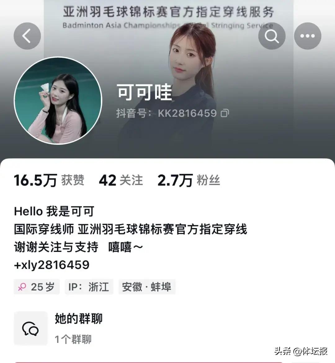 外形出衆的徐樂雲,憑藉“美女”標籤和羽毛球、穿線等內容的結合,她的社交賬號“可可哇”很快就收穫了數萬粉絲。但她也因此收到了許多偏見,花瓶,花架子……這一類的詞她都聽說過。