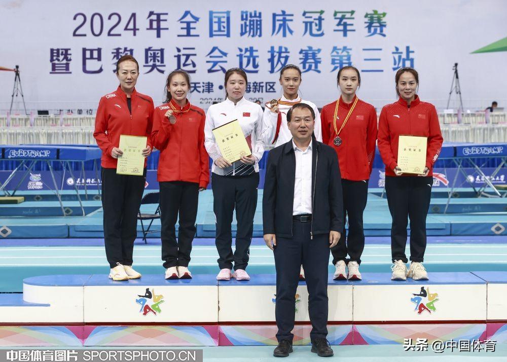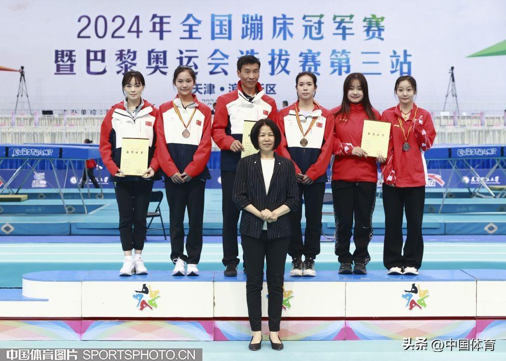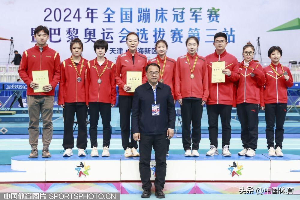 中國體育訊 4月19日,2024年全國蹦牀冠軍賽暨巴黎奧運會選拔賽(第三站)在天津科技大學落下帷幕。收官日決出雙蹦牀個人、雙人同步、網上個人等多個項目的金牌。備受關注的奧運項目男、女網上個人決賽中,湖南高速蹦牀隊的嚴浪宇和天津隊的朱雪瑩分別斬獲金牌。(中國體育圖片 張昕 攝)
