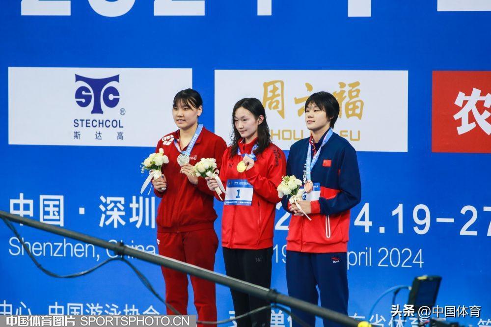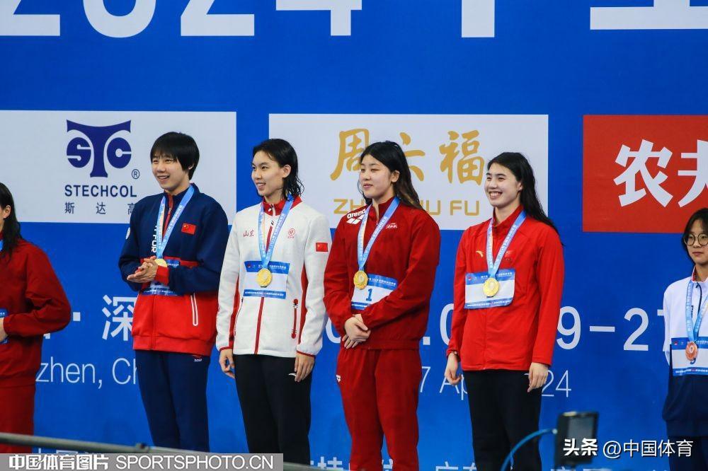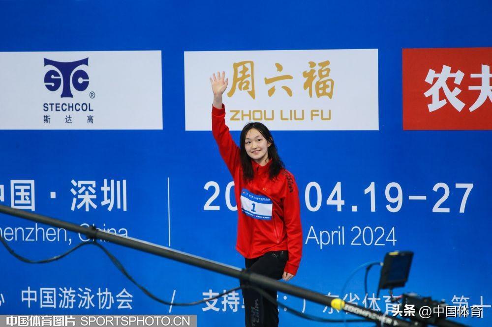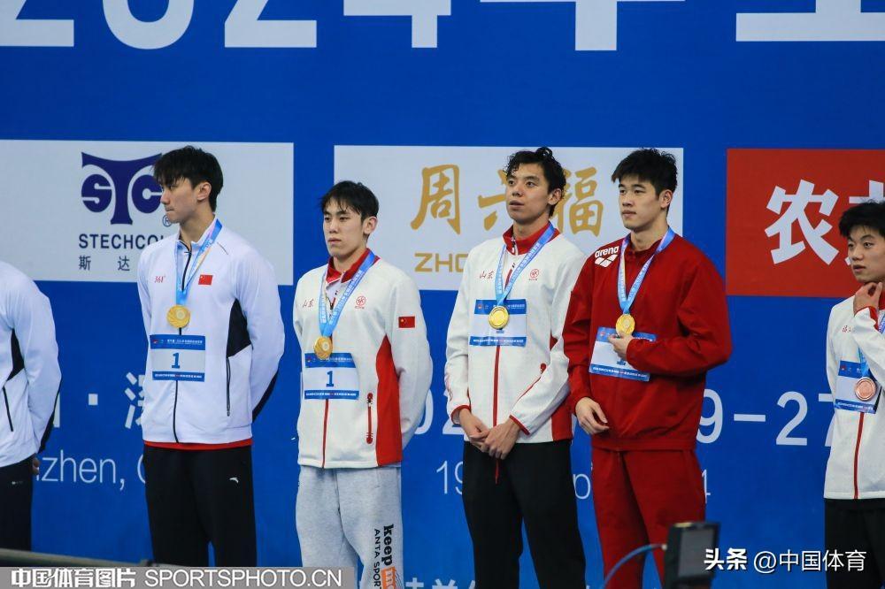 中國體育訊 4月19日,2024年全國游泳冠軍賽在廣東省深圳市大運中心遊泳館開賽。首日比賽中,潘展樂奪得男子400米自由泳和男子4X100米自由泳接力兩枚金牌,成就“雙冠王”;女子4X100米自由泳接力決賽中,張雨霏攜手程玉潔、楊浚瑄、吳卿風摘金,這枚金牌也成爲張雨霏送給自己26歲生日的最好禮物。(中國體育圖片 黃志 攝)