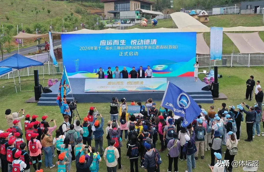 4月19日,第十一屆長三角運動休閒體驗季在德清拉開大幕,來自浙江省、上海市、江蘇省及安徽省的體育達人代表團共計200餘人,在德清進行了一場集合水、陸、空時尚運動玩法於一體的戶外運動大派對。