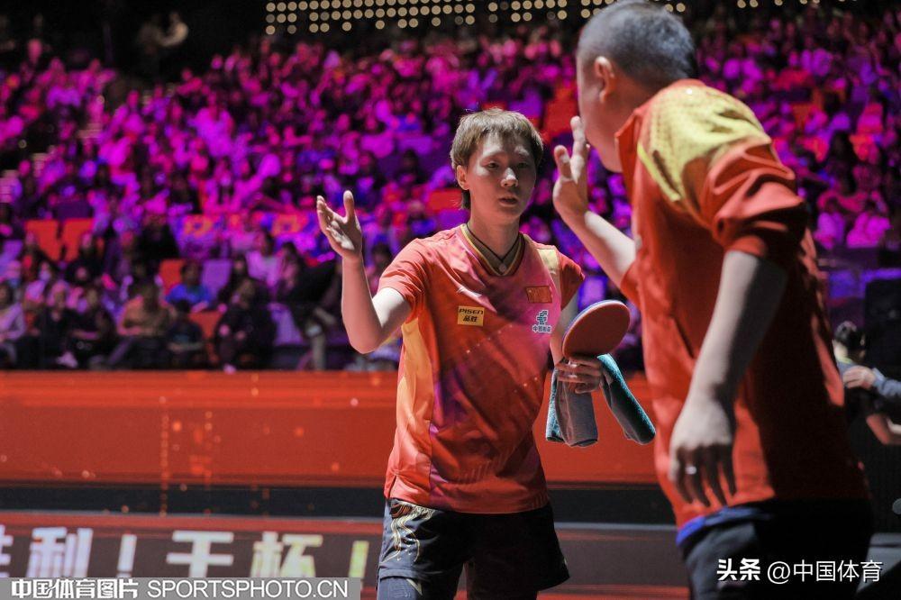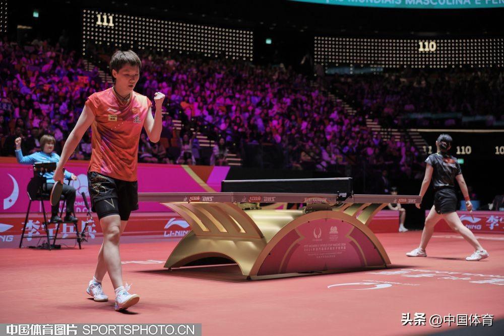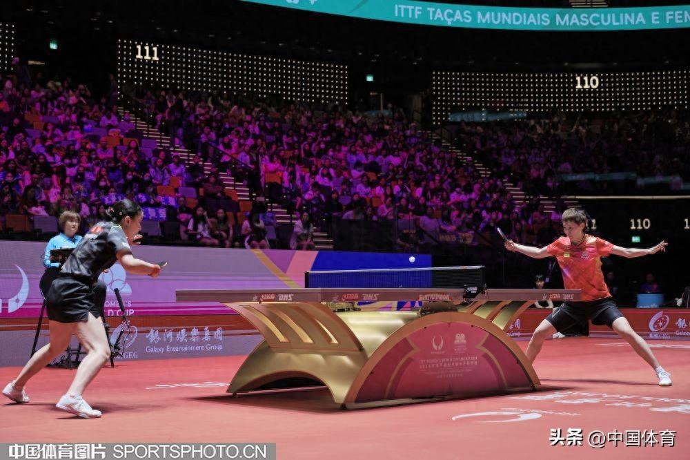 中國體育訊 4月20日,2024年國際乒聯世界盃繼續在澳門銀河綜藝館舉行。在女子單打半決賽中,中國選手王曼昱以4比2戰勝日本選手張本美和,晉級決賽。圖爲王曼昱與張本美和在比賽中。(中國體育圖片 鹿麟 攝)