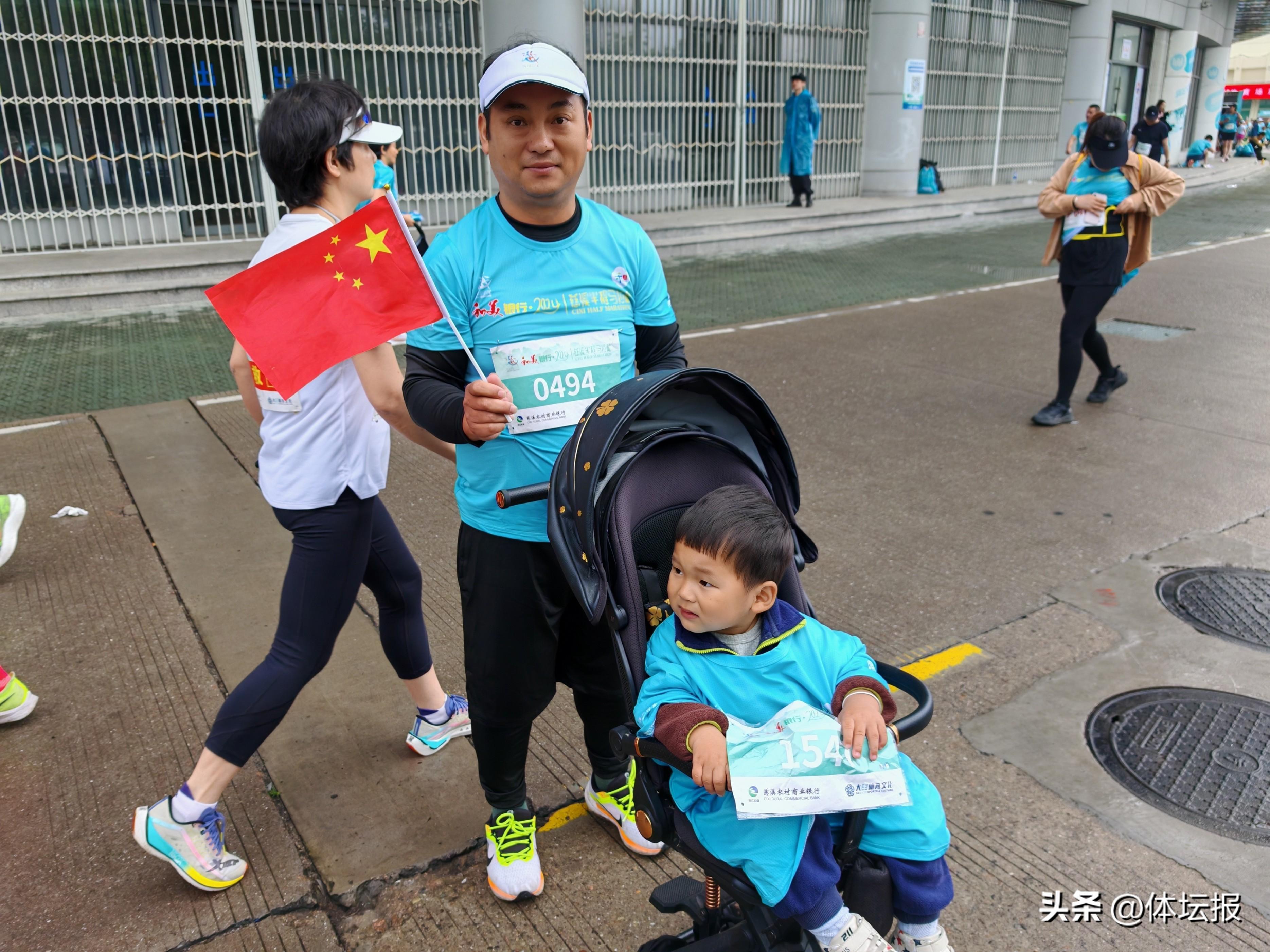 一位推着嬰兒車的父親格外引人注目。“我們一家都很愛好體育、愛好路跑,所以想在孩子小時候就帶他來感受馬拉松氛圍,在他成長道路埋下一些體育基因。”跑友林旭傑說。