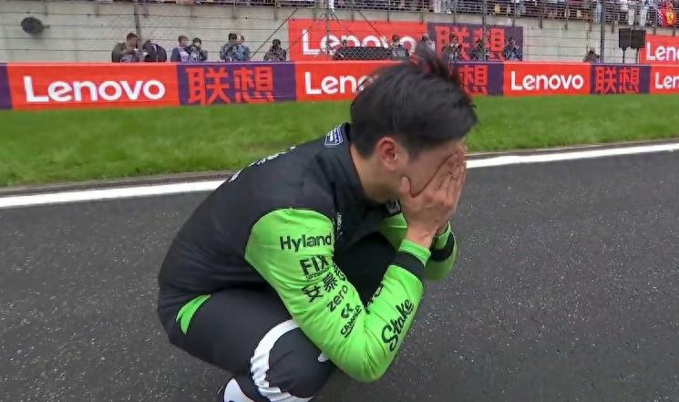 賽後,他獨自蹲在大直道上,面對主場中國車迷給他的加油聲和掌聲,周冠宇非常激動,捂臉落淚,這一刻,她真正圓夢了。雖然沒有拿到第一名,雖然沒有站上領獎臺,但對於中國車手來說,已經無比榮耀的成績了。