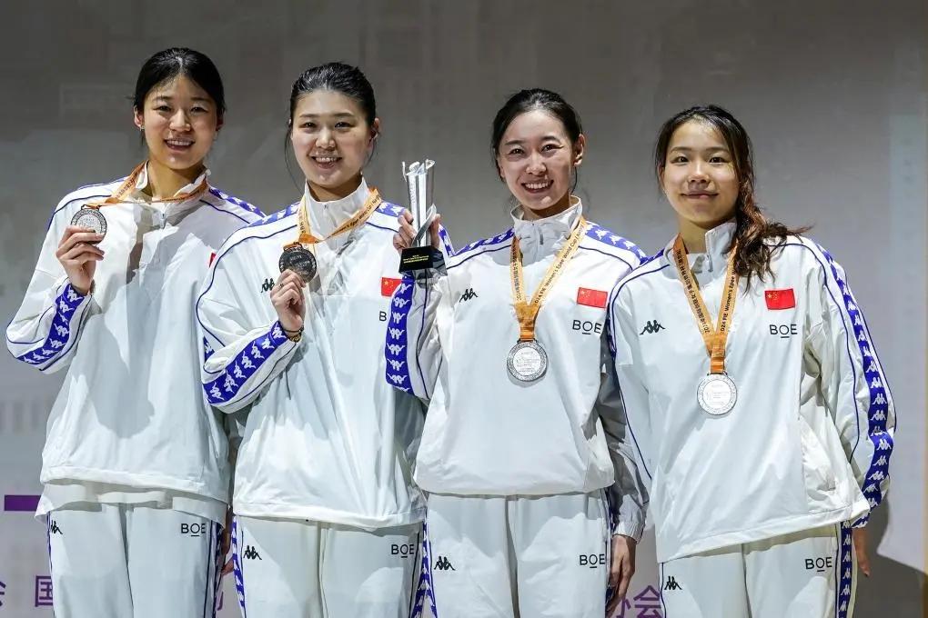 餘思涵(左一)跟隨中國女子重劍隊獲得巴黎奧運會團體資格