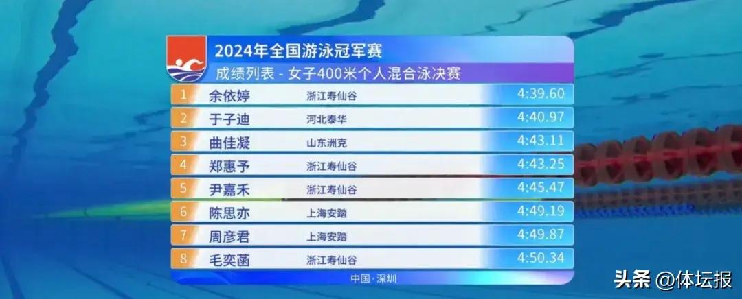 在國內賽場的女子400米個人混合泳項目中,餘依婷並未遭遇太大挑戰,她的表現是否能達到奧運A標纔是比賽的真正焦點。