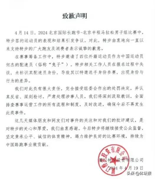 北京半馬官方處罰文件指出,“讓出”冠軍的三名非洲運動員並非正式參賽運動員,而是何傑的配速員,只是因爲“賽前漏報”,導致此次烏龍事件。然而,這樣的解釋顯然沒有得到多數大衆的諒解和理解。