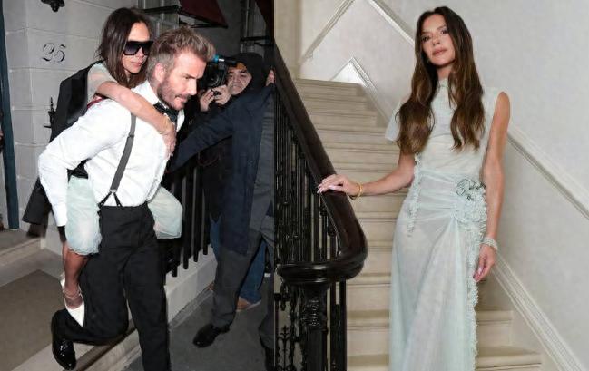 值得一提的是,由於貝嫂的腿部傷勢還沒有完全康復,所以老公貝克漢姆大秀恩愛,穿着白襯衣和揹帶褲,揹着維多利亞出入餐廳,盡顯紳士風度,畫面非常有愛。