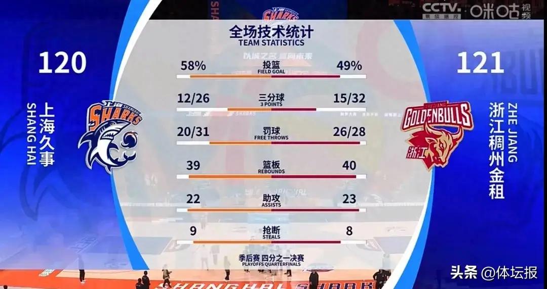 4月24日,CBA季後賽的八強比賽在浙江稠州金租男籃和上海男籃之間展開,此前兩隊大比分打成1:1。誰能贏下本場比賽,誰就能在季後賽佔據主動。最終,浙江稠州金租男籃在最後1.5秒以121:120險勝上海男籃,大比分2:1領先,拿到賽點。